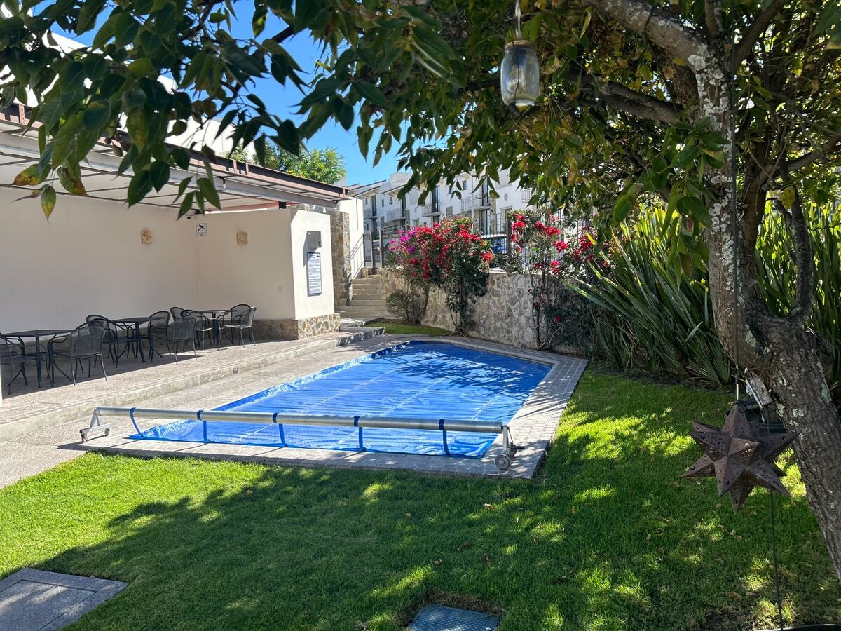 It has a covered garage for two cars, a garden with excess space, a large terrace, and a pool ideal for socializing with friends and family.