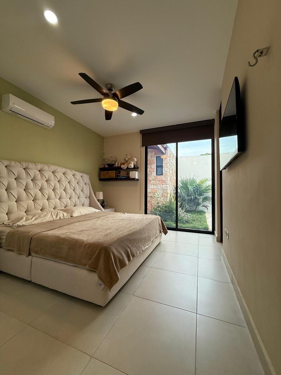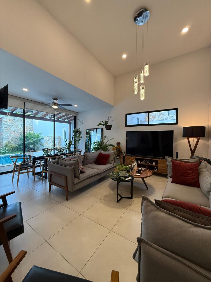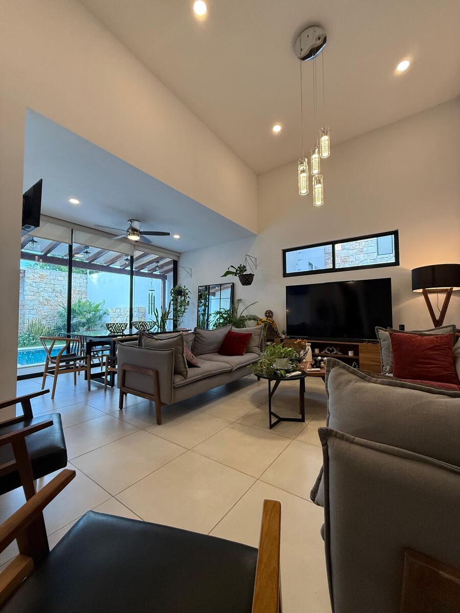 Beautiful Residence for Sale on ONE FLOOR with 16 SOLAR PANELS and electrified wall in Temozón Norte, less than 200 meters from the Mérida Progreso highway. Privileged location with immediate access to the Mérida Progreso highway, different access routes to the property, close to all services, the best shopping malls: La Isla, Harbor, Galerías. Near Costco, some of the best universities in Mérida, Hospitals, the American Embassy, and only 20 minutes from the beach.