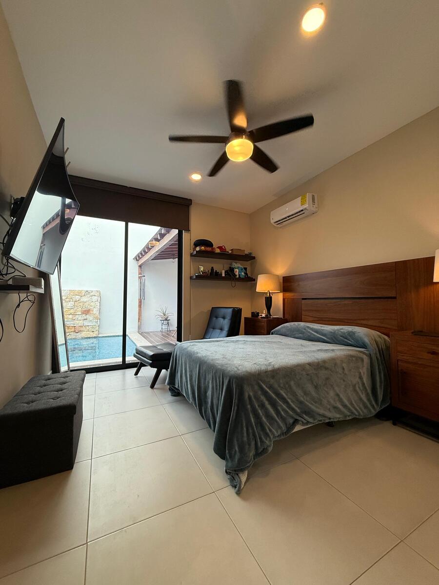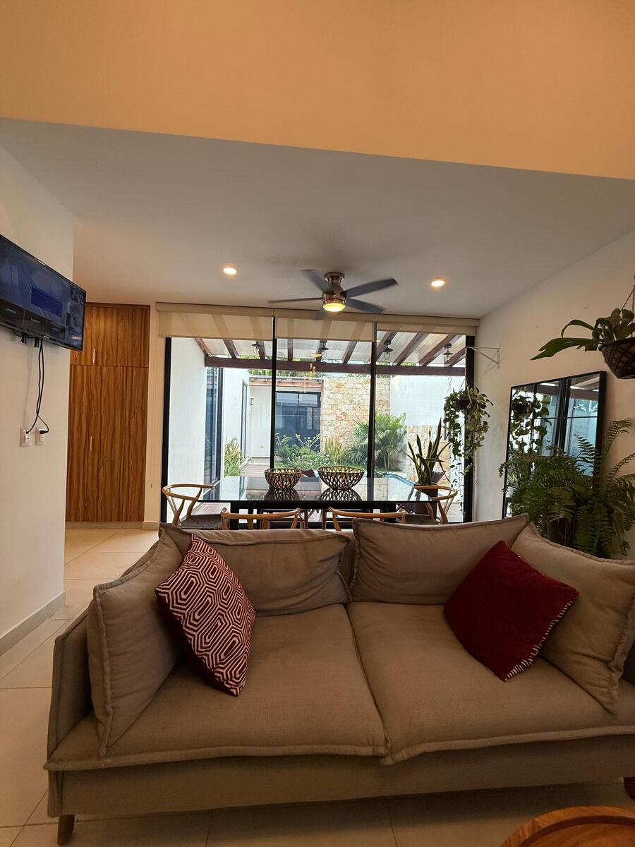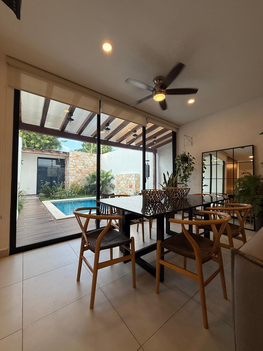 Beautiful Residence for Sale on ONE FLOOR with 16 SOLAR PANELS and electrified wall in Temozón Norte, less than 200 meters from the Mérida Progreso highway. Privileged location with immediate access to the Mérida Progreso highway, different access routes to the property, close to all services, the best shopping malls: La Isla, Harbor, Galerías. Near Costco, some of the best universities in Mérida, Hospitals, the American Embassy, and only 20 minutes from the beach.