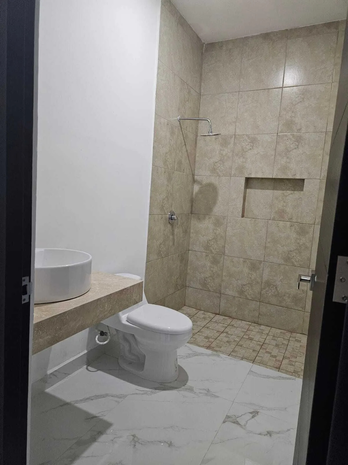 - Recámara secundaria con baño completo y espacio de closet, con cancel corredizo para acceso a