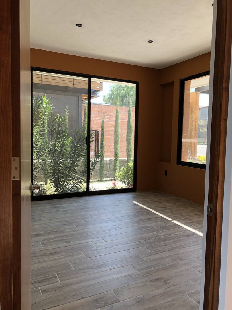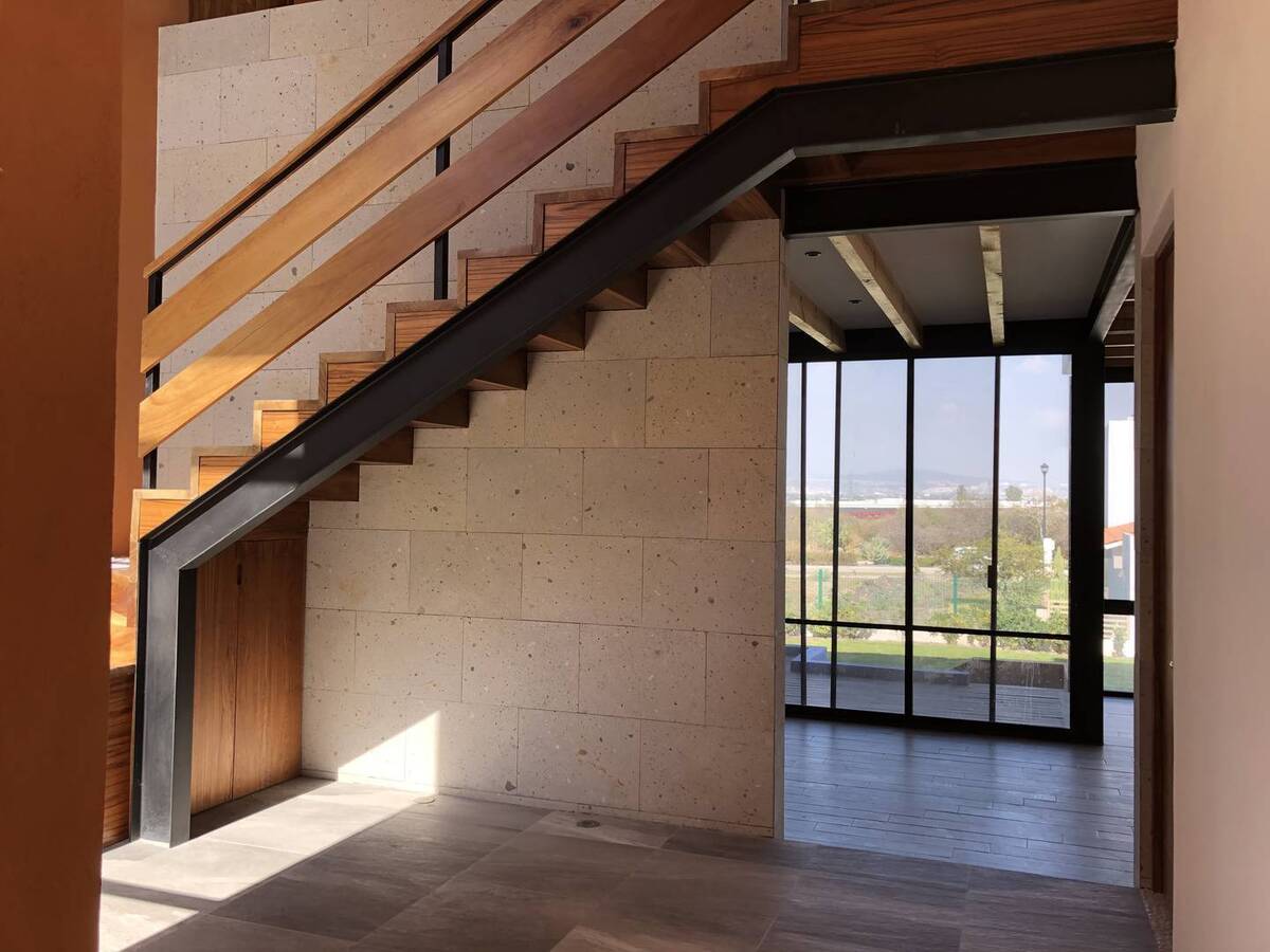 House for Sale in Corregidora Querétaro Balvanera exclusive private subdivision with strict 24/7 security Balvanera Golf Polo & Country Club Southills Balvanera area. The residence has 3 spacious Bedrooms with dressing room and full bathroom, the main one with a jacuzzi overlooking the 200m2 garden with sprinkler irrigation and the City, Kitchen with island and breakfast bar for 4 people and granite countertop and pantry, Office/Study with independent entrance, Service room with full bathroom, large service patio, living room, dining room, breakfast area, 2 storage rooms, Half bathroom for guests, TV room with beautiful panoramic view of Querétaro, linen closet, Terrace towards the garden with deck wood, Hall with double height ceiling.