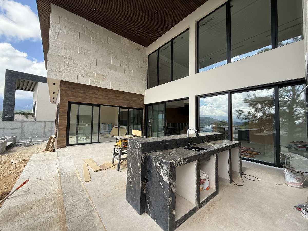 Exterior de ensueño: terraza, bar, grill/asador, jardín y zonas verdes decoradas por paisajista; alberca, fogatero y amplia terraza con vistas espectaculares.