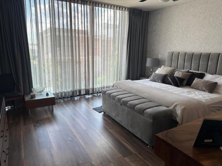 Con equipo de aire acondicionado en recámaras y paneles solares, cámaras de seguridad.
