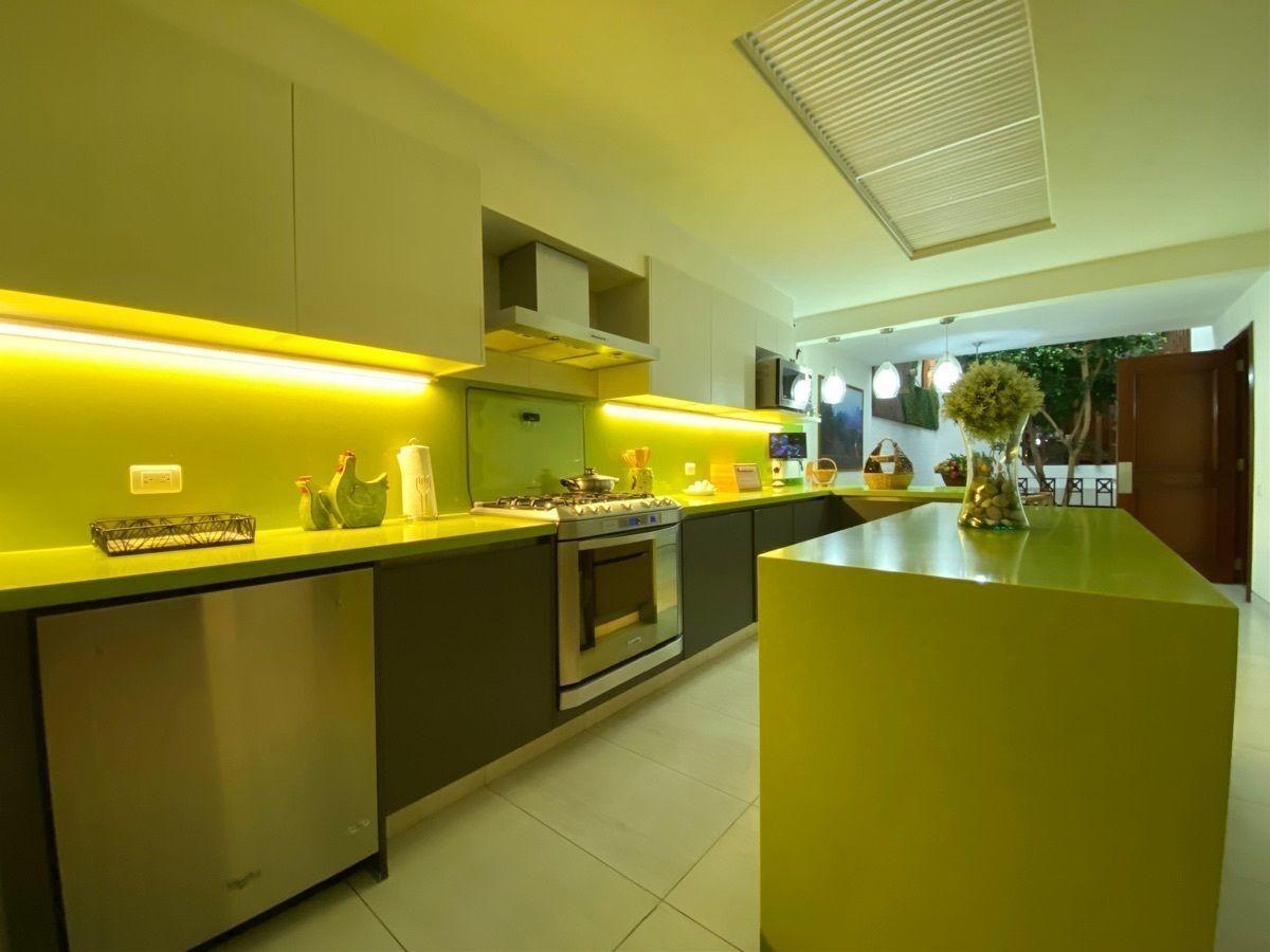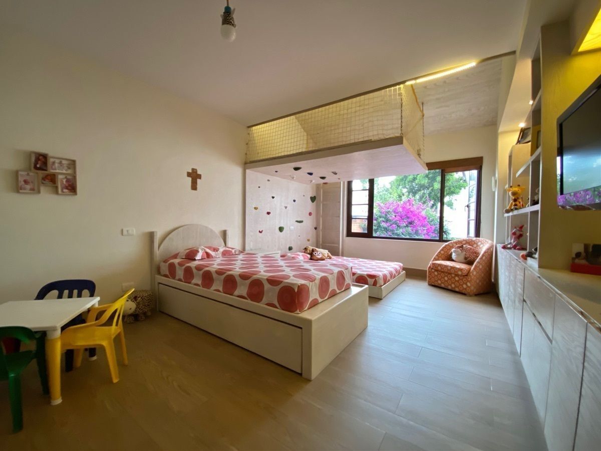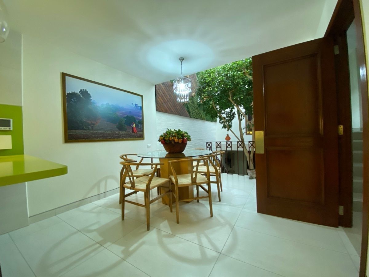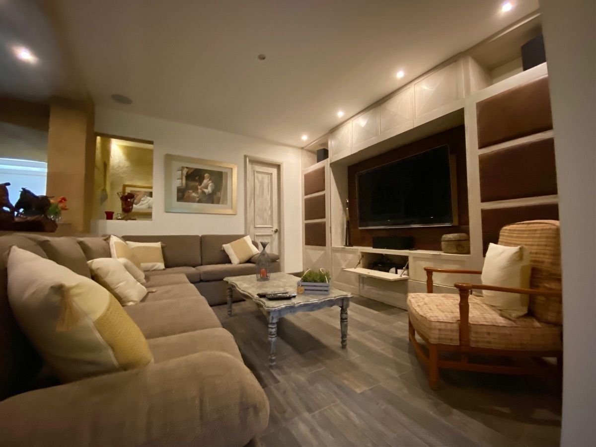Multipurpose room with access to a beautiful garden, it has a bar with a counter, wine cellar, office, kitchenette, 2 guest bathrooms, TV room (which can be converted into bedroom 3), gym, storage room, parking for 3 covered cars, cistern, laundry area with utility room, service room with bathroom and solar panels.