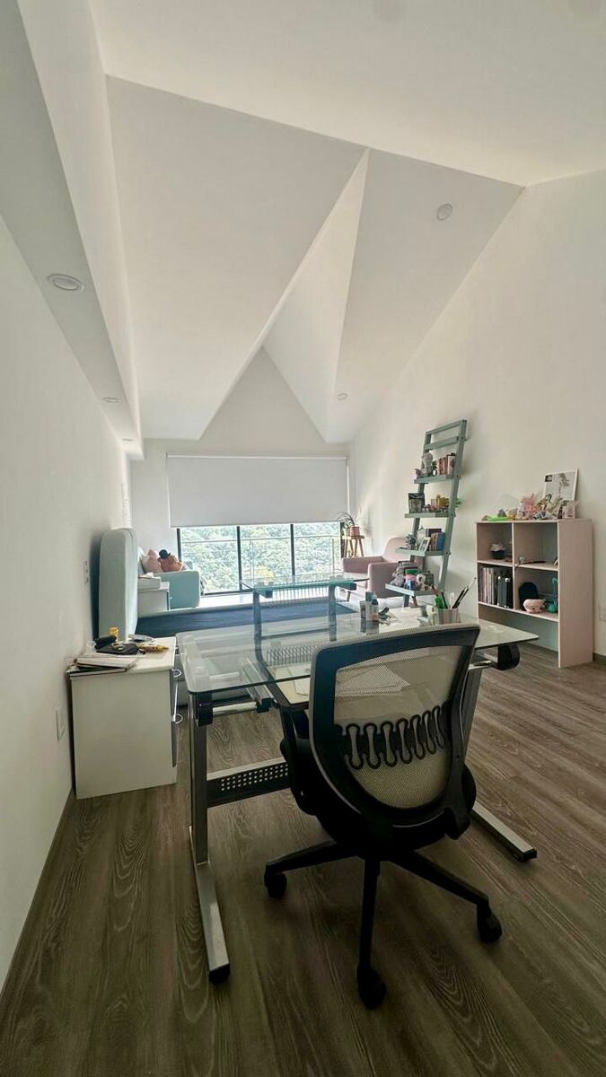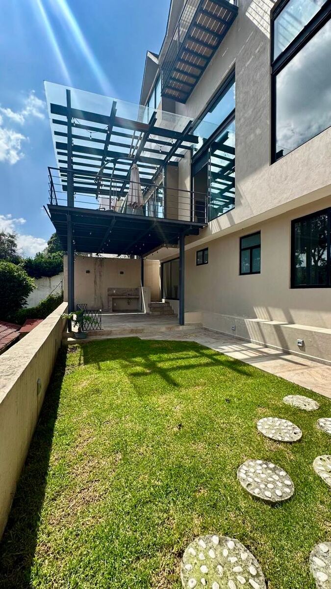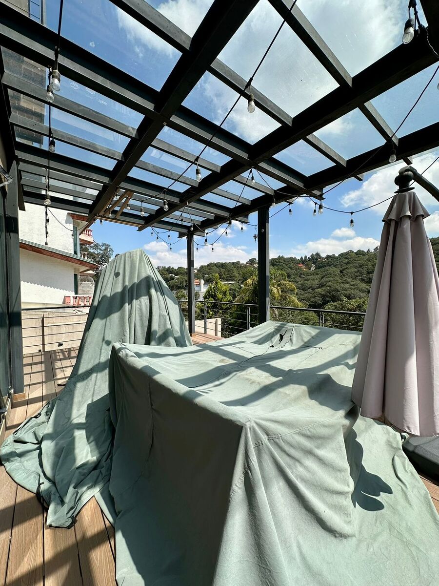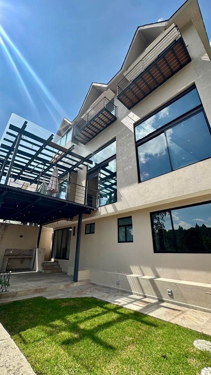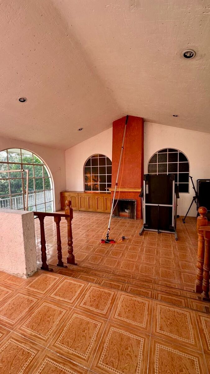 Additionally, it has a cabin with a jacuzzi and space for a living or dining room.Casa en venta, cuenta con 4 pisos, en el piso 4 esta la recamara principal muy amplia, con vestidor y baño completo remodelada, una segunda recamara con vestidor y baño completo y una tercera que se utiliza como oficina que podría ser otra recamara, en el piso 3 es la entrada principal cuenta con espacio para sala con chimenea, medio baño y una recamara de visitas con baño completo, en este piso se encuentra el cuarto de lavado y cuarto de servicio, con vista a la sala comedor. El piso 2 hay un espacio para juegos de mesa, con medio baño, closet de vinos y cuarto obscuro para adaptarlo para almacenar vinos, en este piso encontramos sala comedor, bastante amplio, con salida a una gran terraza que cuenta con una vista espectacular, la cocina es integral tiene espacio para un antecomedor y salida a la terraza.