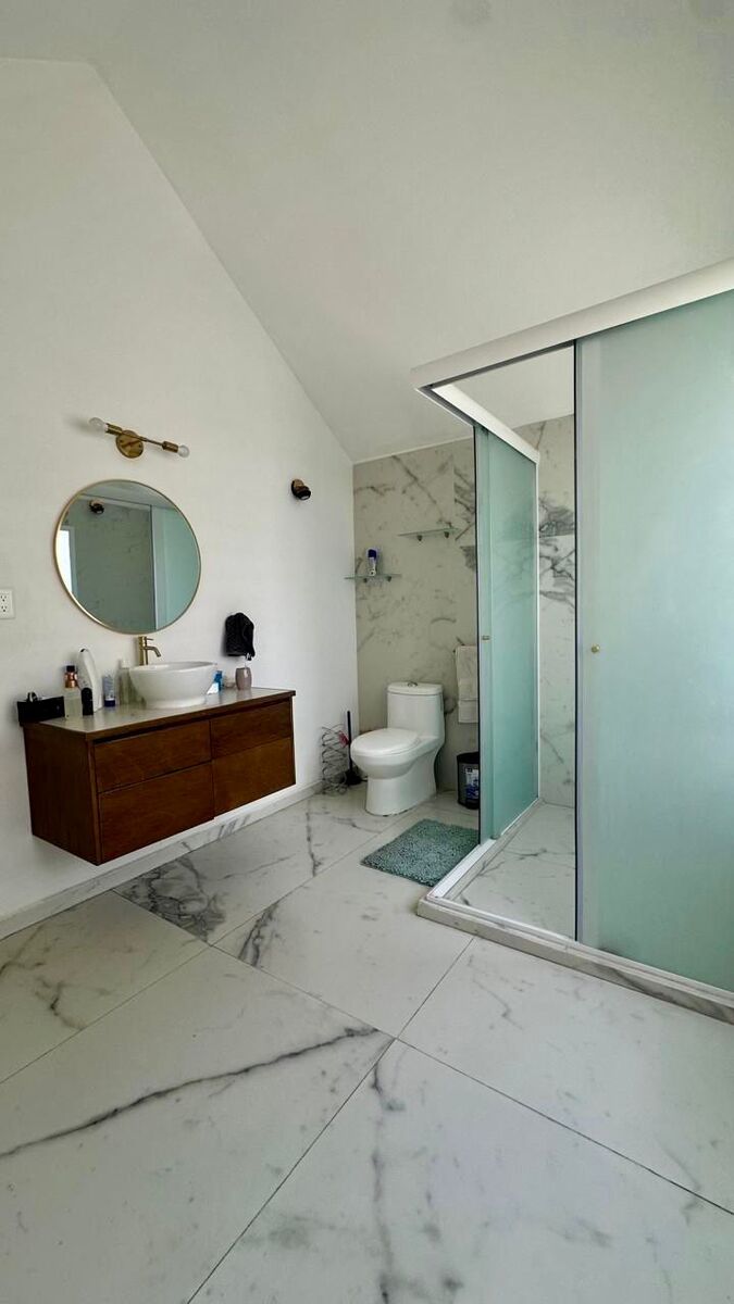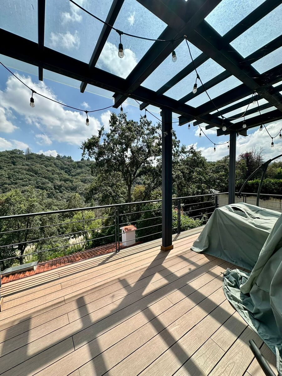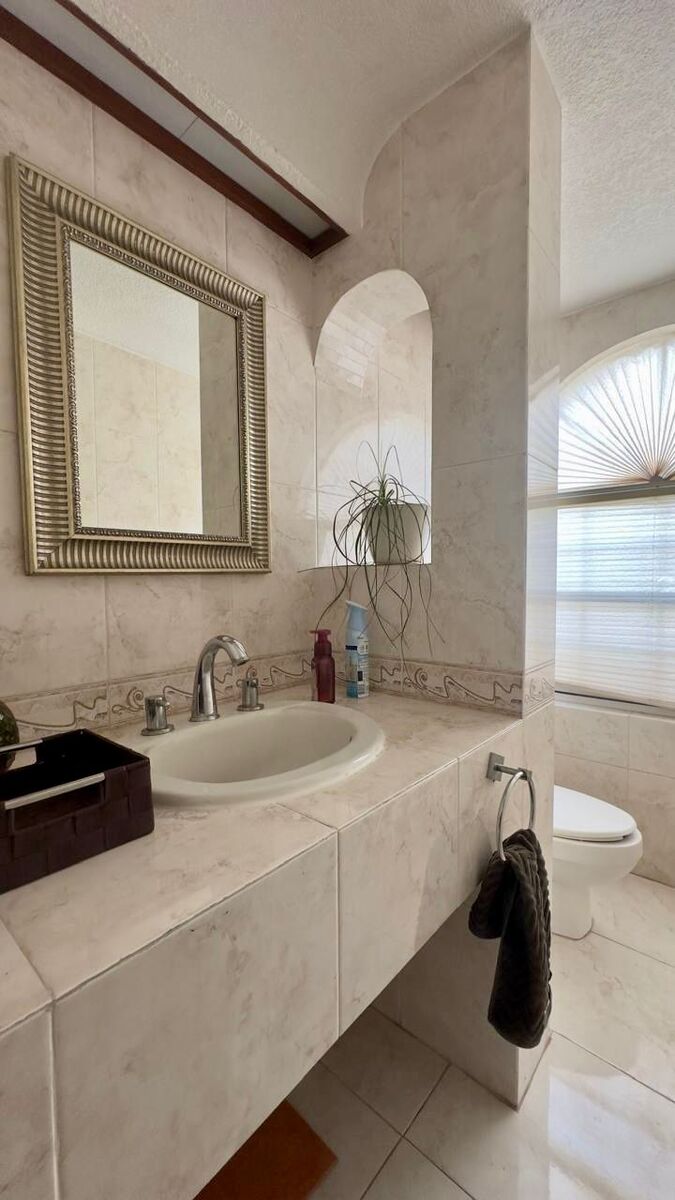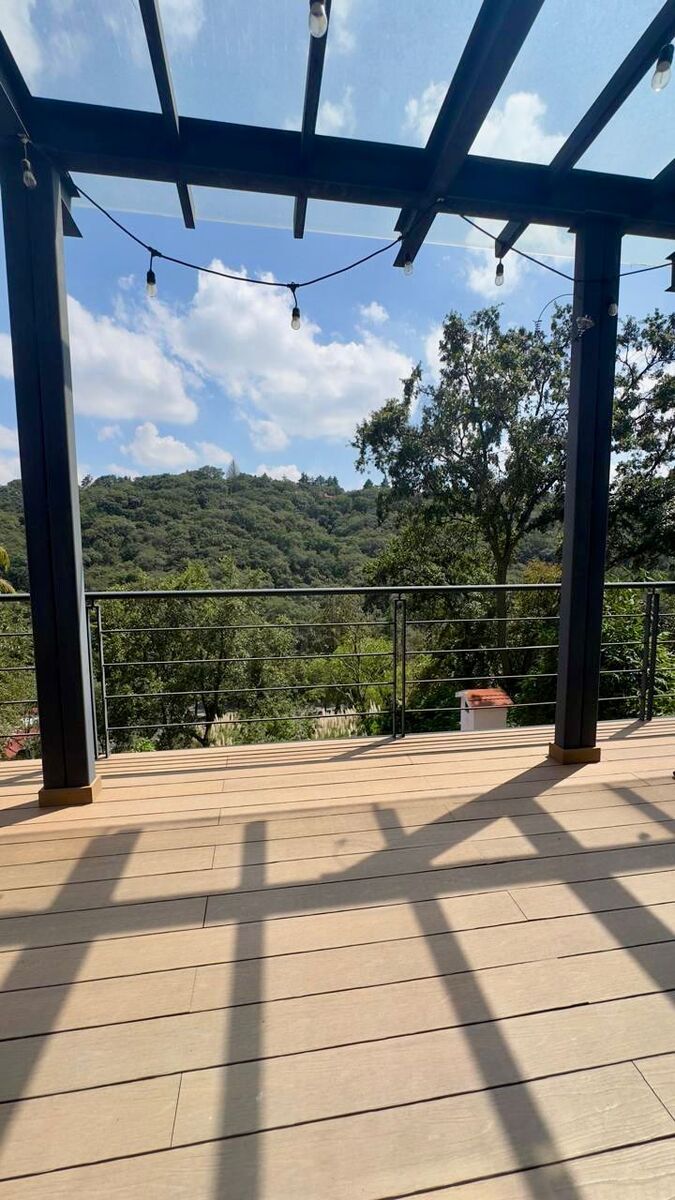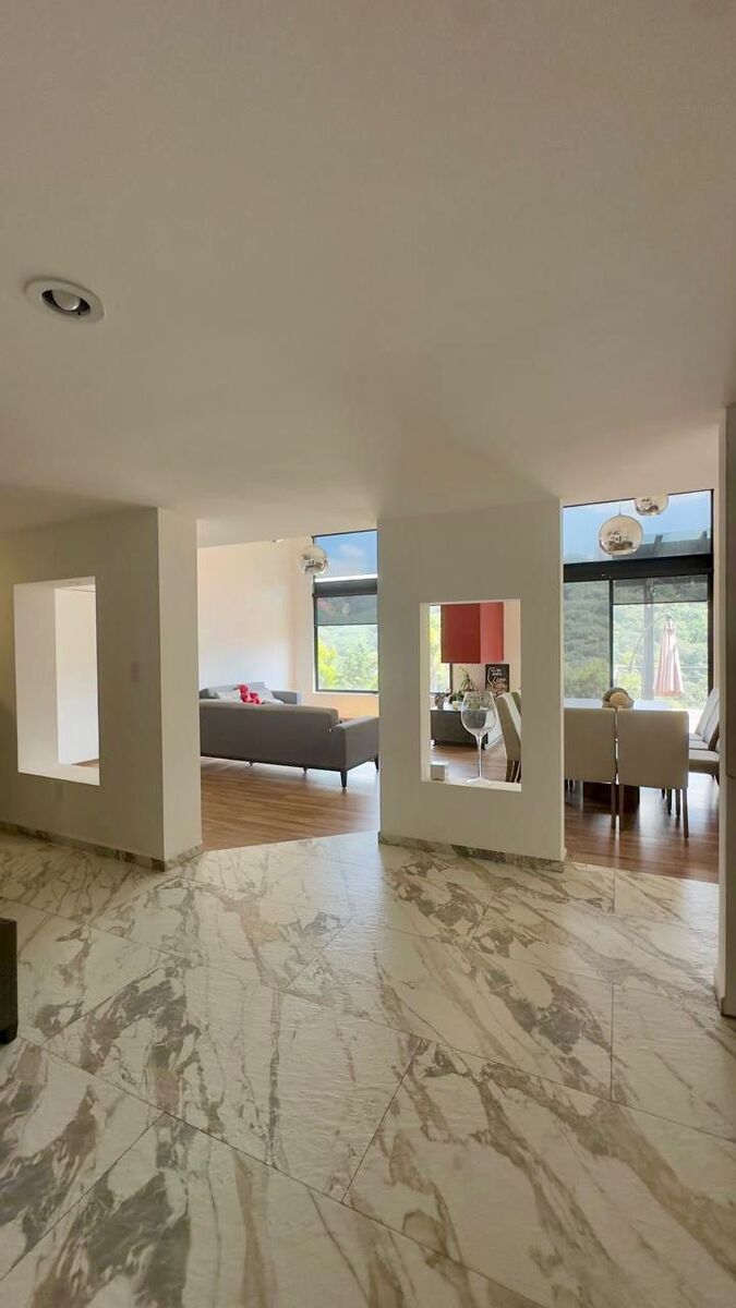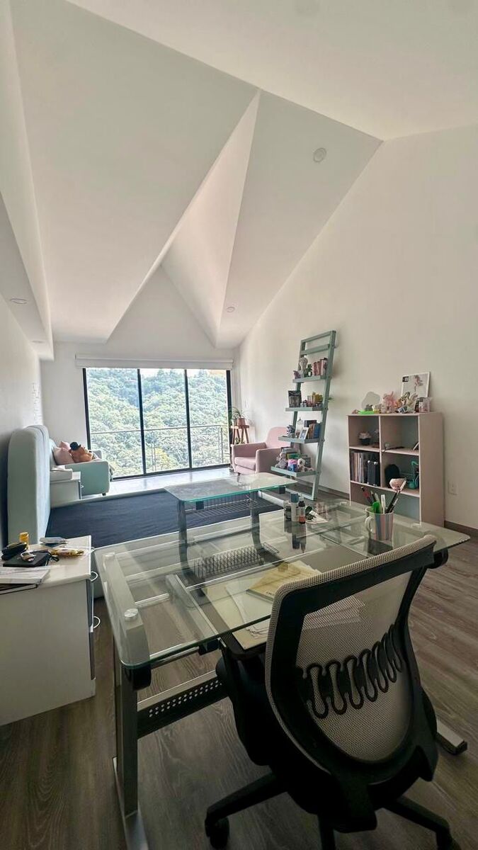 Additionally, it has a cabin with a jacuzzi and space for a living or dining room.Casa en venta, cuenta con 4 pisos, en el piso 4 esta la recamara principal muy amplia, con vestidor y baño completo remodelada, una segunda recamara con vestidor y baño completo y una tercera que se utiliza como oficina que podría ser otra recamara, en el piso 3 es la entrada principal cuenta con espacio para sala con chimenea, medio baño y una recamara de visitas con baño completo, en este piso se encuentra el cuarto de lavado y cuarto de servicio, con vista a la sala comedor. El piso 2 hay un espacio para juegos de mesa, con medio baño, closet de vinos y cuarto obscuro para adaptarlo para almacenar vinos, en este piso encontramos sala comedor, bastante amplio, con salida a una gran terraza que cuenta con una vista espectacular, la cocina es integral tiene espacio para un antecomedor y salida a la terraza.