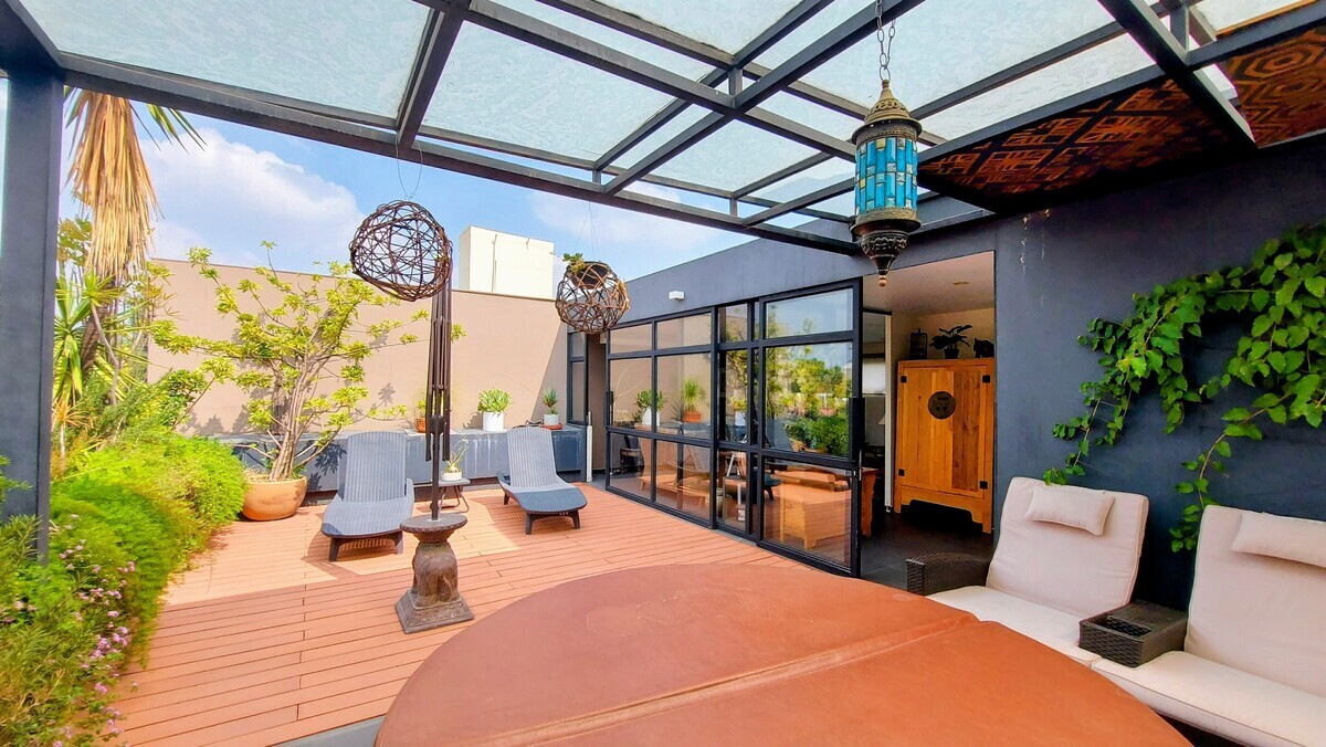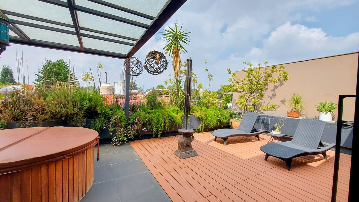 • Amplio Family Room con acceso a Roof Garden privado aprox. de 24 m2 con vista arbolada muy agradable y jacuzzi.