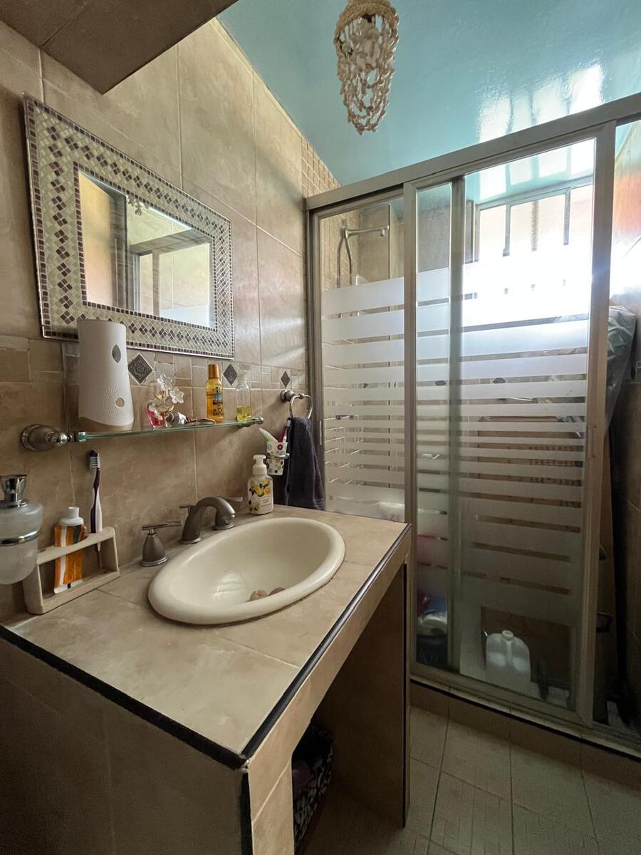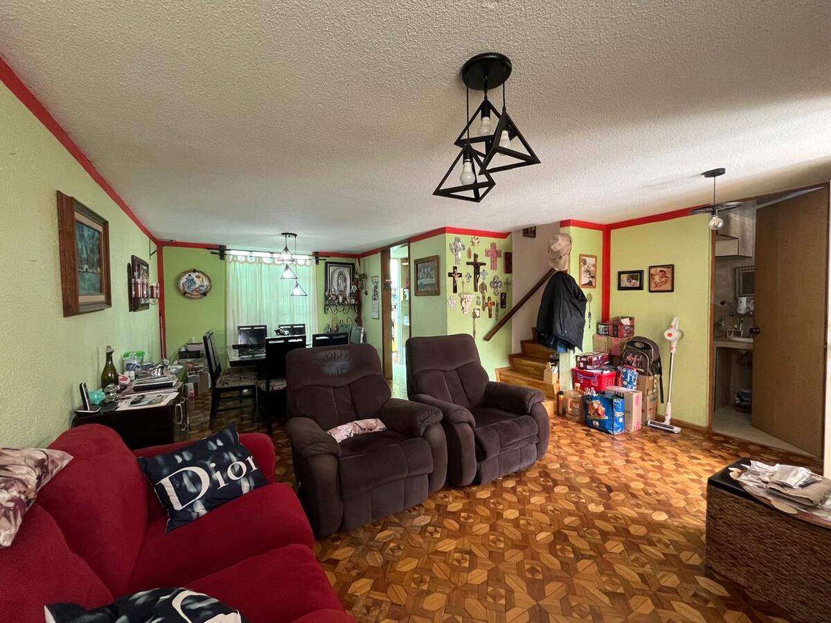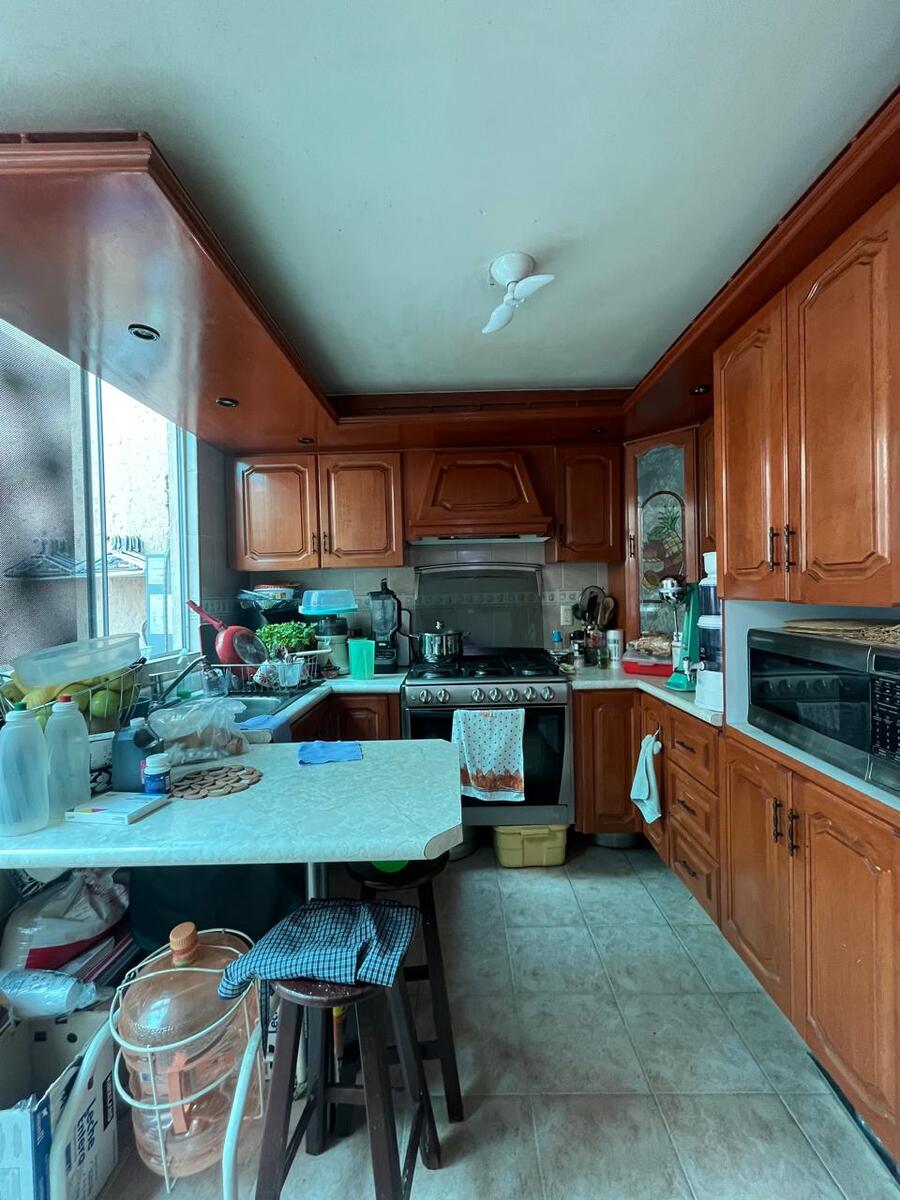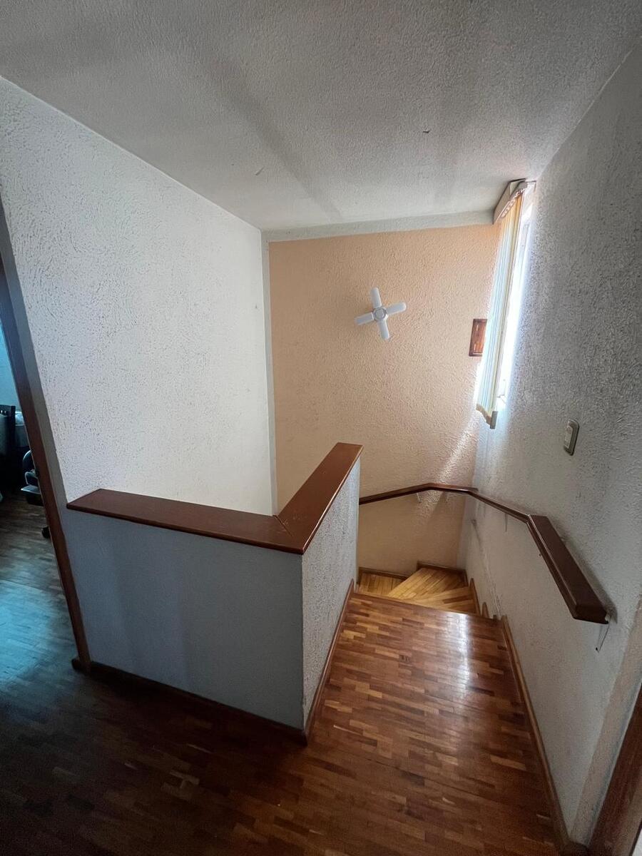 The house consists of two levels. On the first level, there is the living room, dining room, and kitchen, as well as a full bathroom, and a covered backyard where the laundry area is located. The kitchen is made of wood, and the entire floor of the house is parquet, which is in very good maintenance condition.