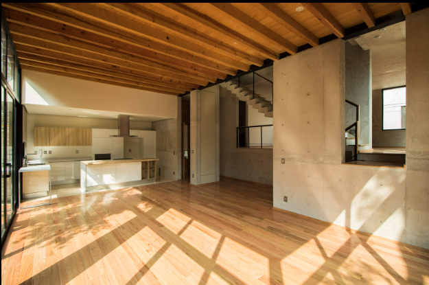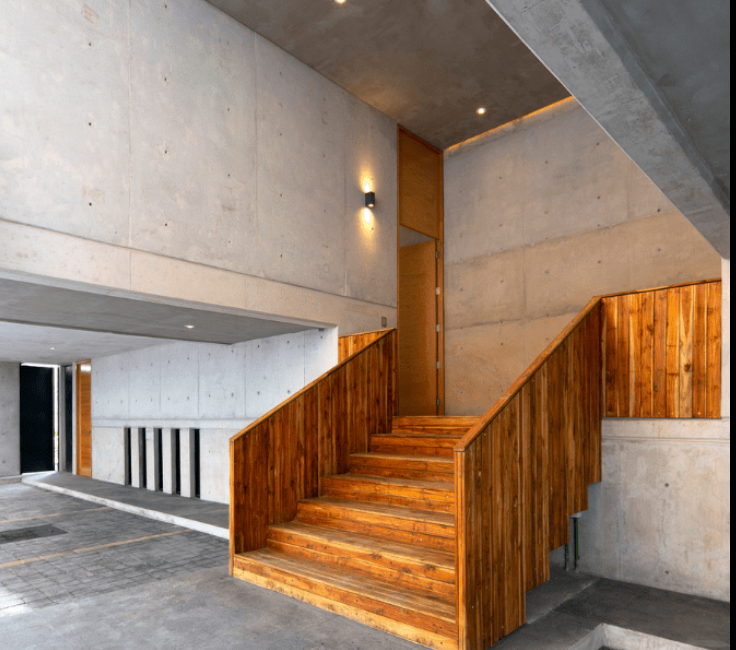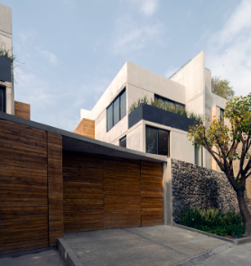 Construida con materiales de primera calidad, incluyendo muros de concreto aparente, pisos de mármol, madera de encino natural, y una sofisticada cocina italiana equipada con accesorios SMEG.