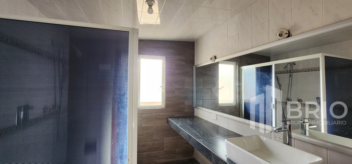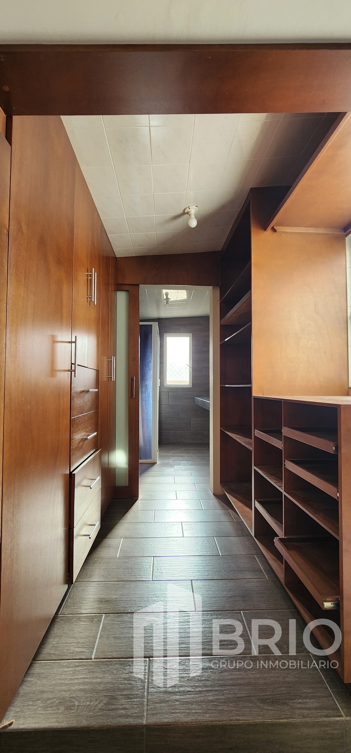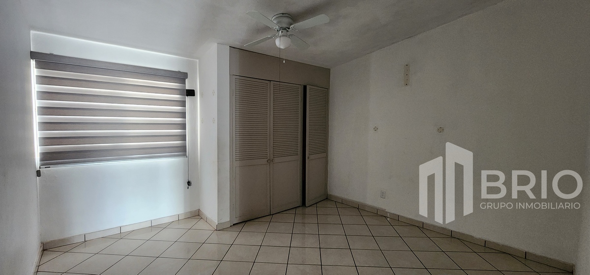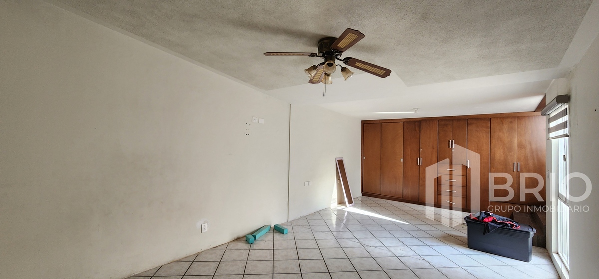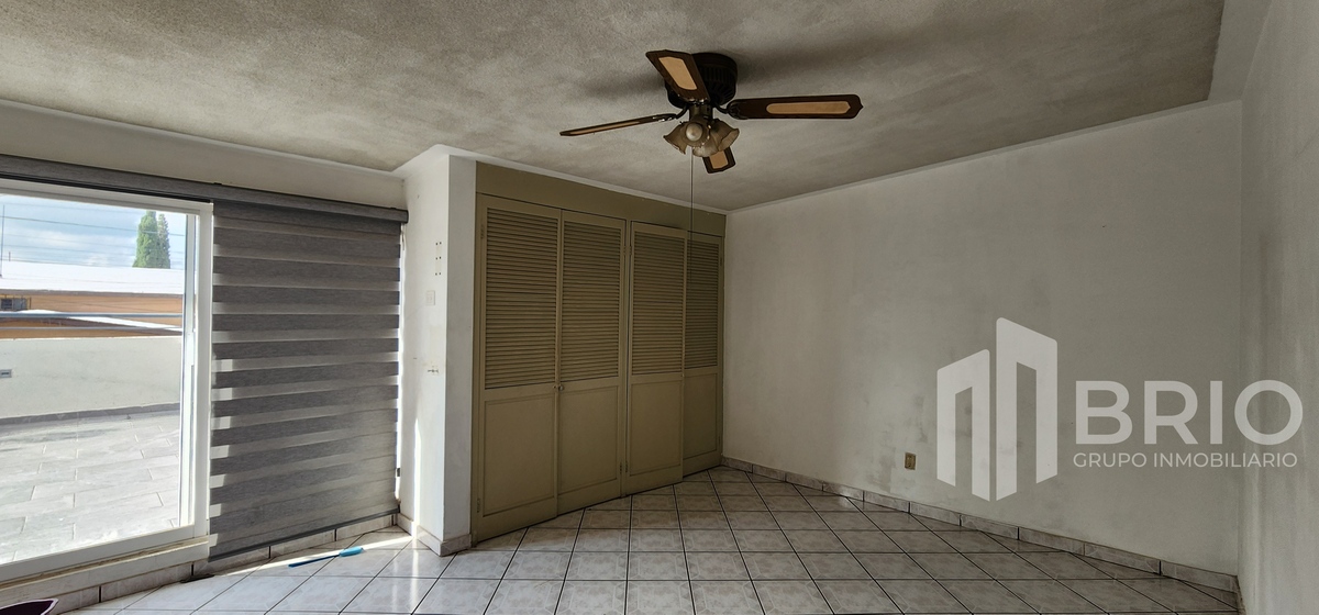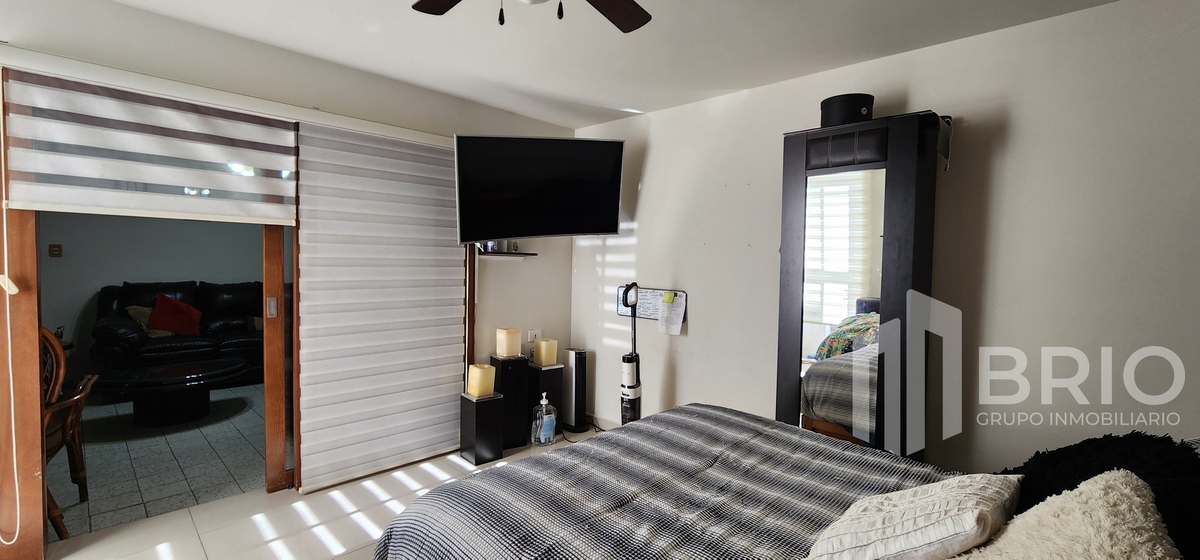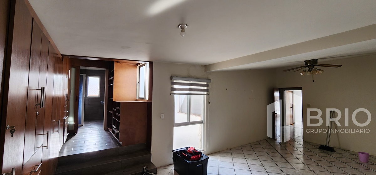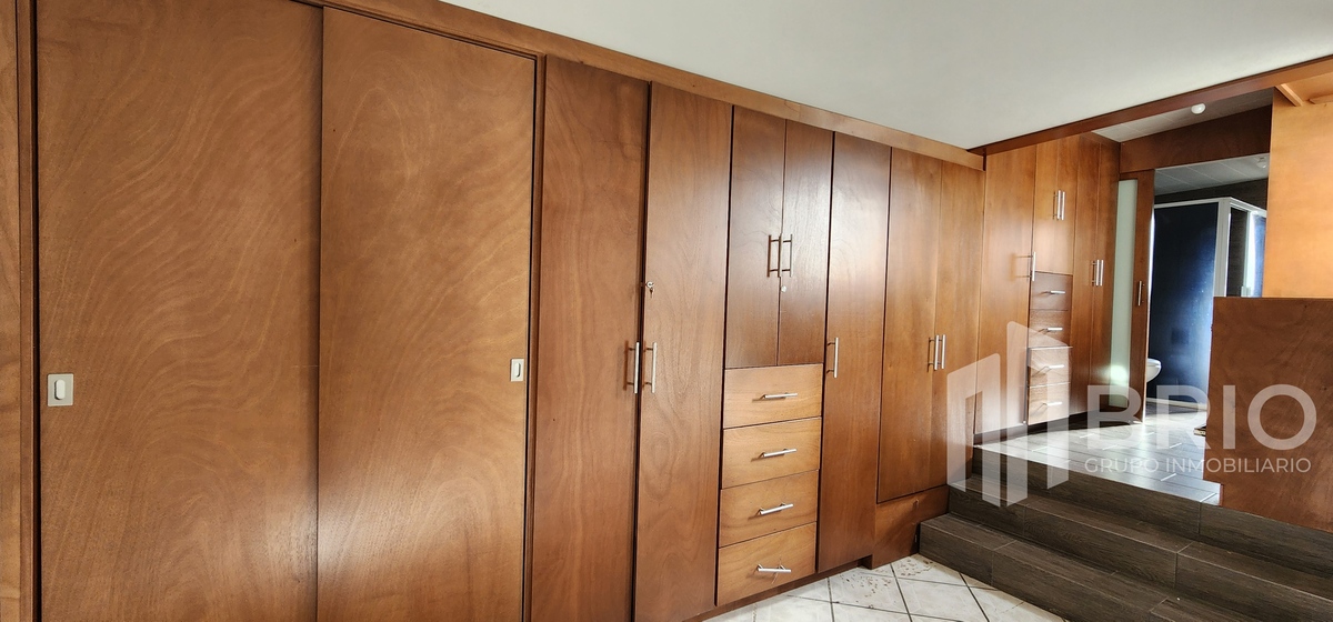 Amplia habitación con closet de pared a pared, vestidor y baño completo.