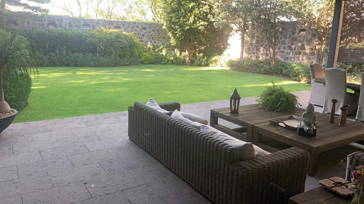 NOM-247Ubicada en calle cerrada con vigilancia y jardín. Cuenta con 4 recámaras cada una con vestidor y baño, sala-comedor, cocina integral, desayunador, estudio, 2 salas de t.v., 2 cuartos de servicio, cuarto de lavado, salón de usos múltiples, bodega, terraza, escaleras, jardín de 400 mts. Aproximadamente 14 lugares de estacionamiento, servicios básicos de: gas estacionario, luz bifásica, agua, cisterna, hidroneumático y puerta eléctrica.