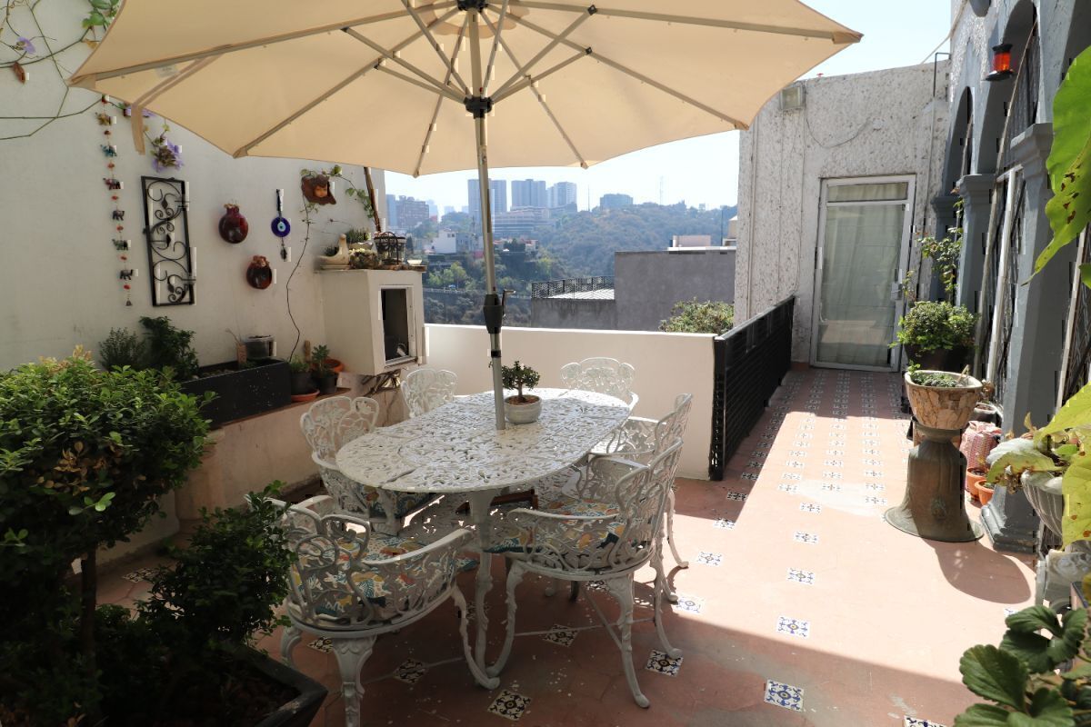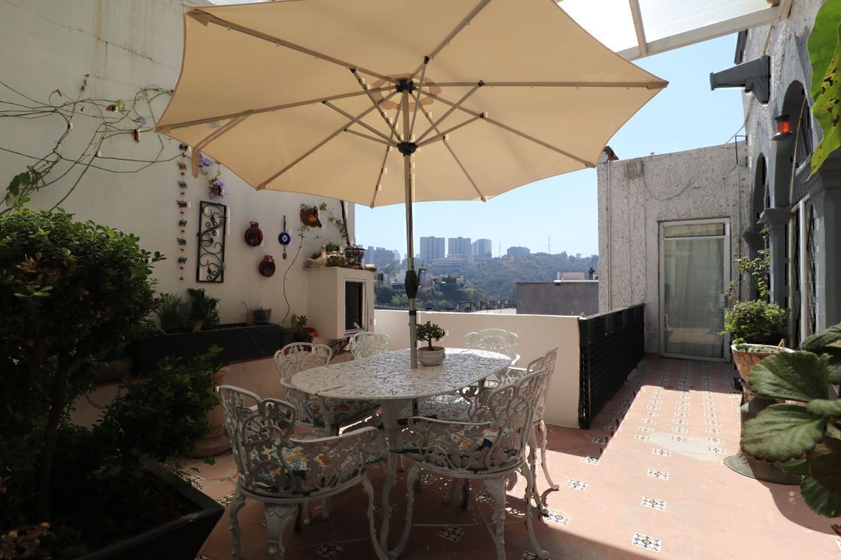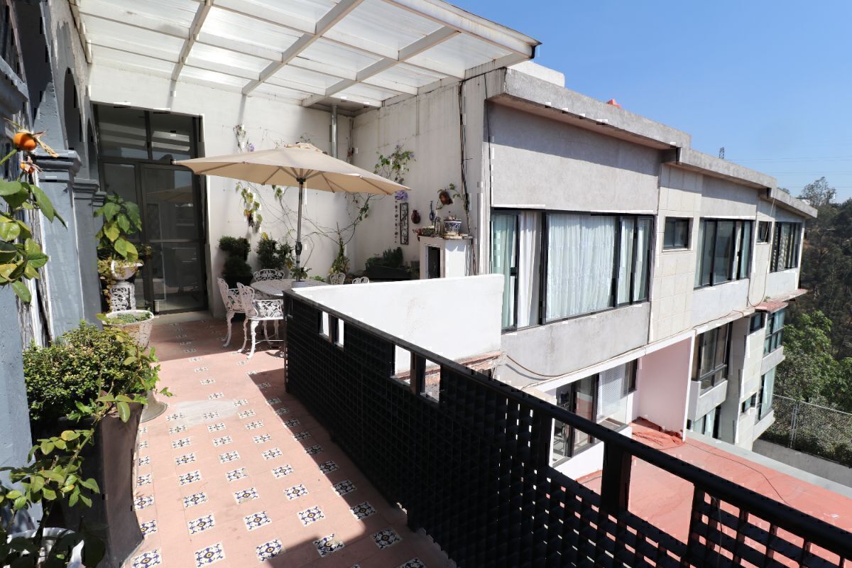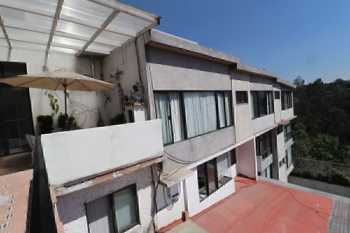 Actualmente el inmueble consta de la Casa principal, con acabados en madera, loseta española, cantera, cristal templado, techos de buena altura y vistas verdes. Cuenta con hall de recepción, amplia sala y comedor con vistas verdes, cocina equipada, área de antecomedor, medio baño de visitas, linda terraza, 3 recamaras grandes, la principal con baño completo y closet, las otras 2 con closet y comparten baño completo, bodega, cuarto de servicio con baño completo, área de lavandería y 5 estacionamientos. *Adicionalmente cuenta con 9 suites con accesos independientes, excelentes vistas arboladas, ventilación natural, muy iluminadas y totalmente amuebladas, cuyas medidas varían de 30.0 M2. a 57.0 M2 y generan un ingreso mensual de $100,000.00 pesos por concepto de rentas.