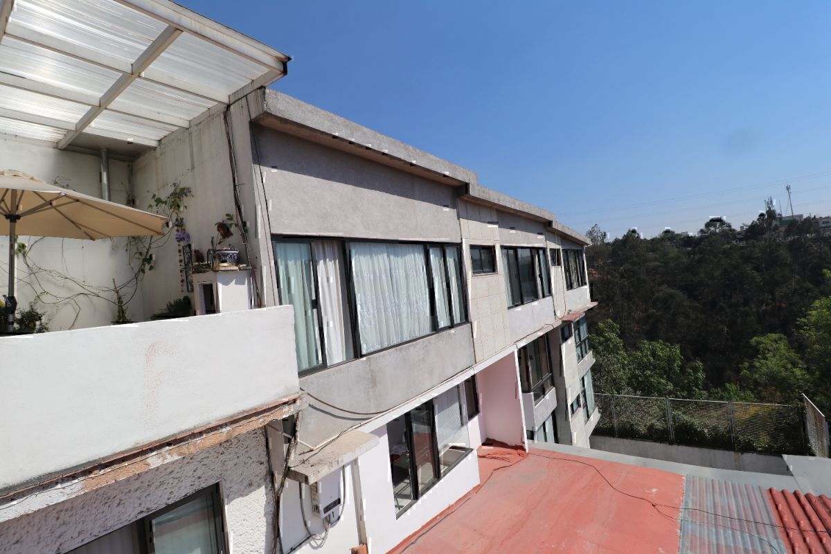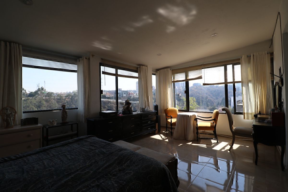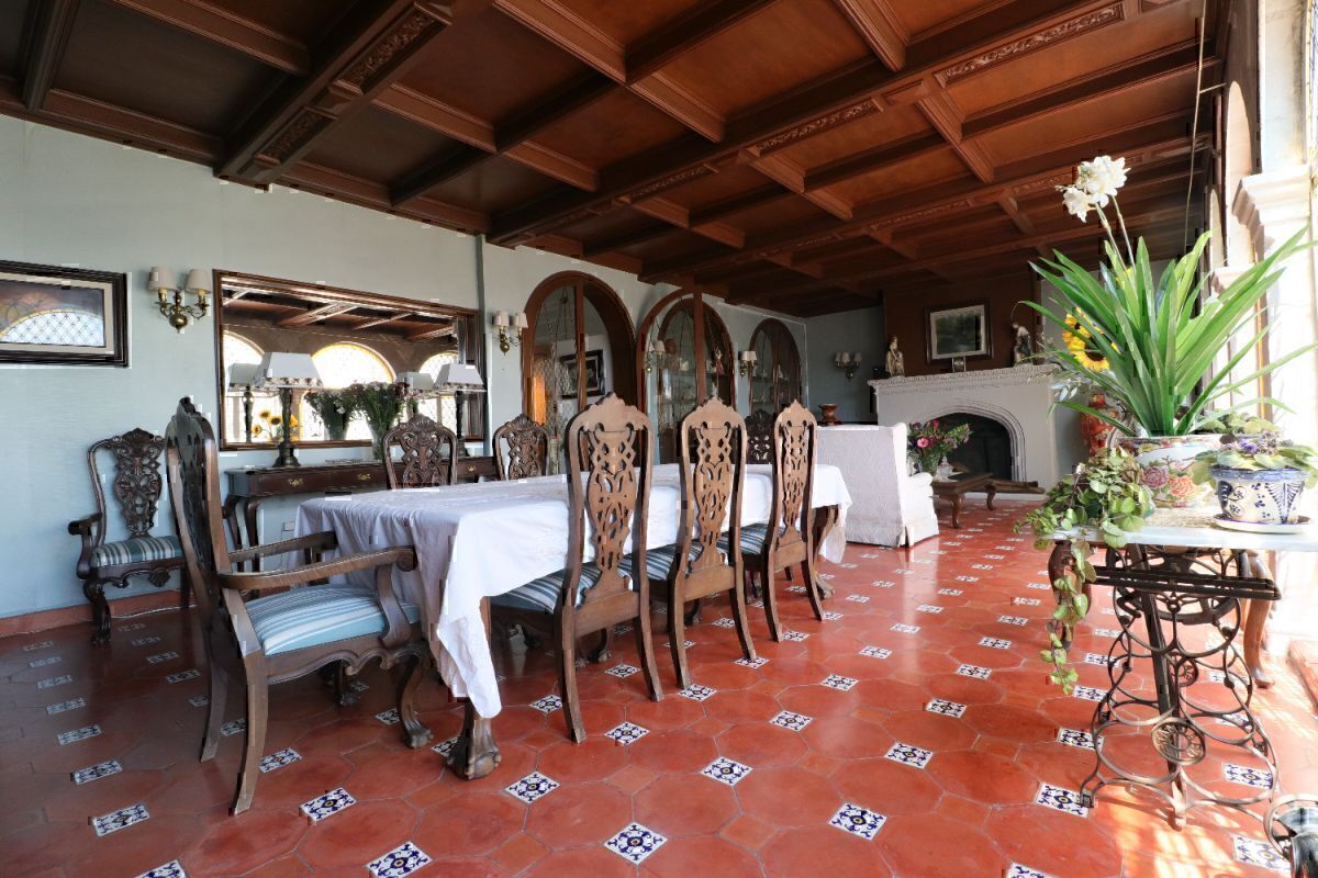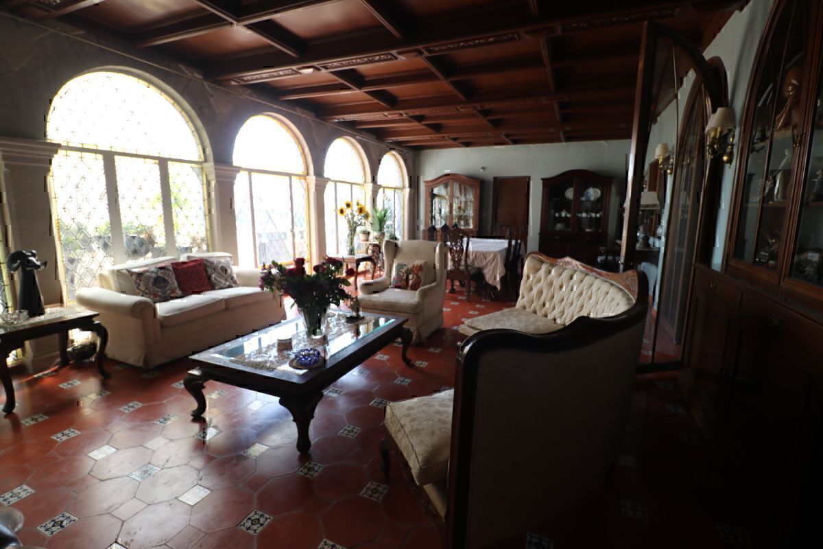 Actualmente el inmueble consta de la Casa principal, con acabados en madera, loseta española, cantera, cristal templado, techos de buena altura y vistas verdes. Cuenta con hall de recepción, amplia sala y comedor con vistas verdes, cocina equipada, área de antecomedor, medio baño de visitas, linda terraza, 3 recamaras grandes, la principal con baño completo y closet, las otras 2 con closet y comparten baño completo, bodega, cuarto de servicio con baño completo, área de lavandería y 5 estacionamientos. *Adicionalmente cuenta con 9 suites con accesos independientes, excelentes vistas arboladas, ventilación natural, muy iluminadas y totalmente amuebladas, cuyas medidas varían de 30.0 M2. a 57.0 M2 y generan un ingreso mensual de $100,000.00 pesos por concepto de rentas.