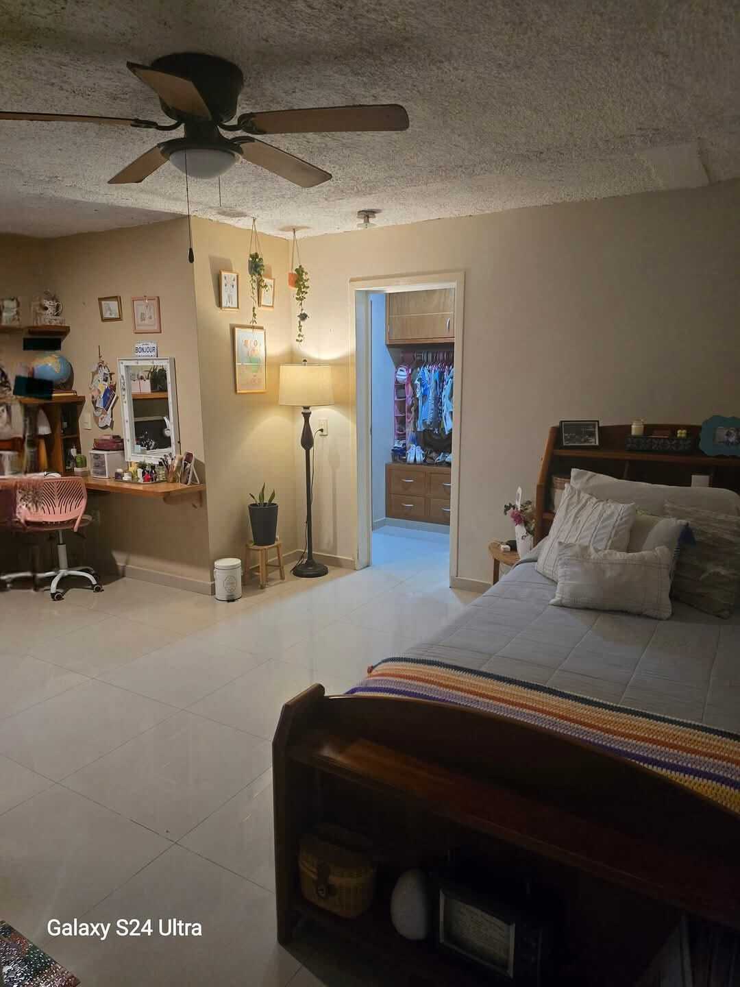 Secondary bedroom with mini-split, with walk-in closet and bathroom.