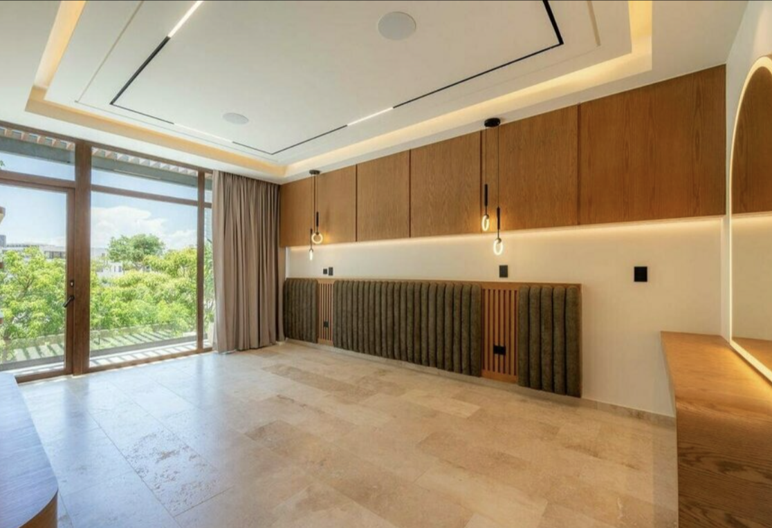 Espacios sociales elegantes*, incluyendo sala principal, comedor abierto y áreas de entretenimiento.