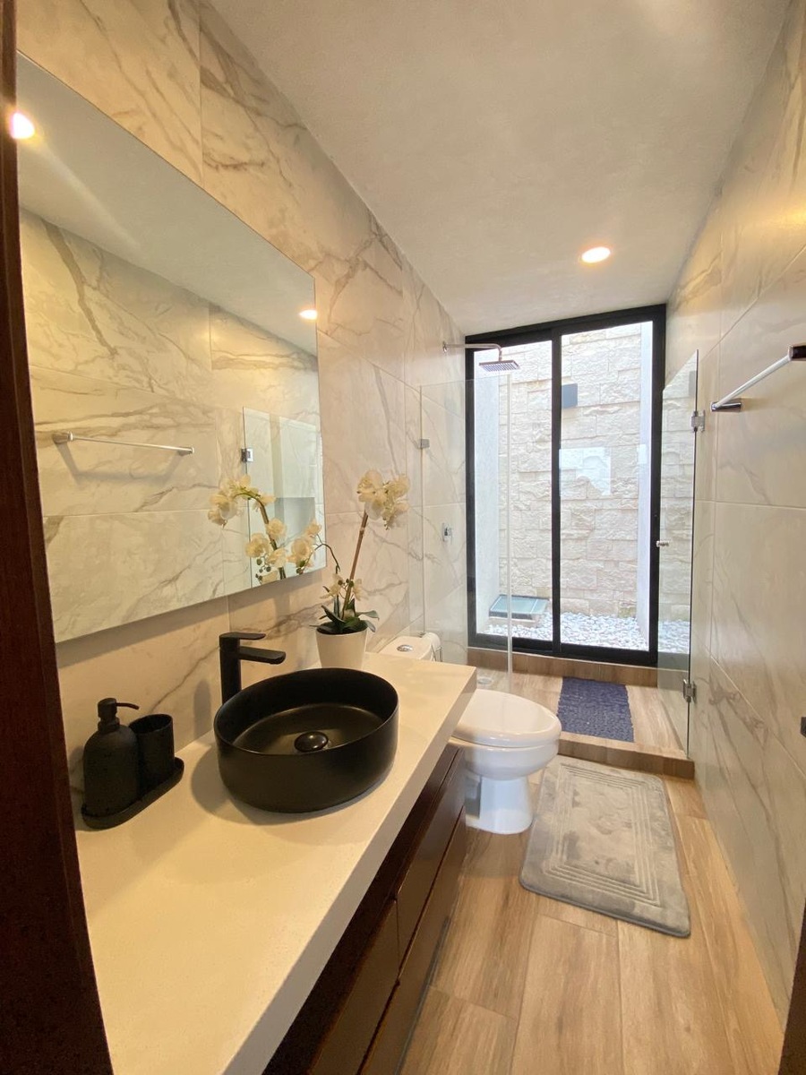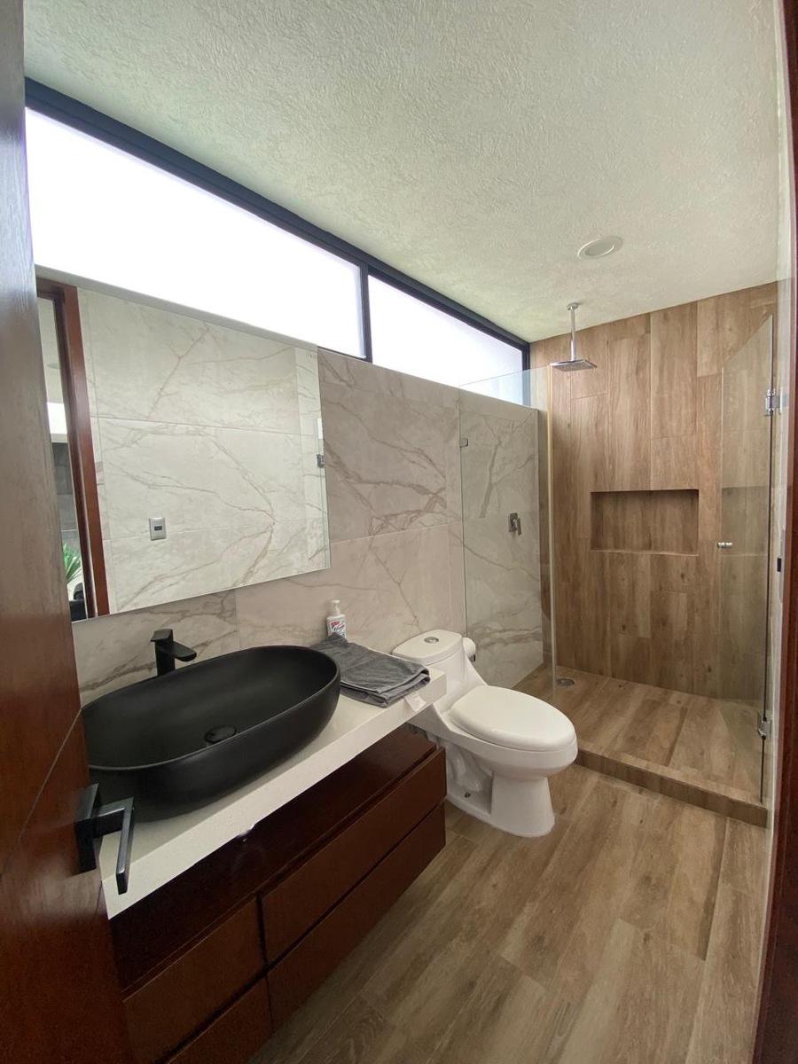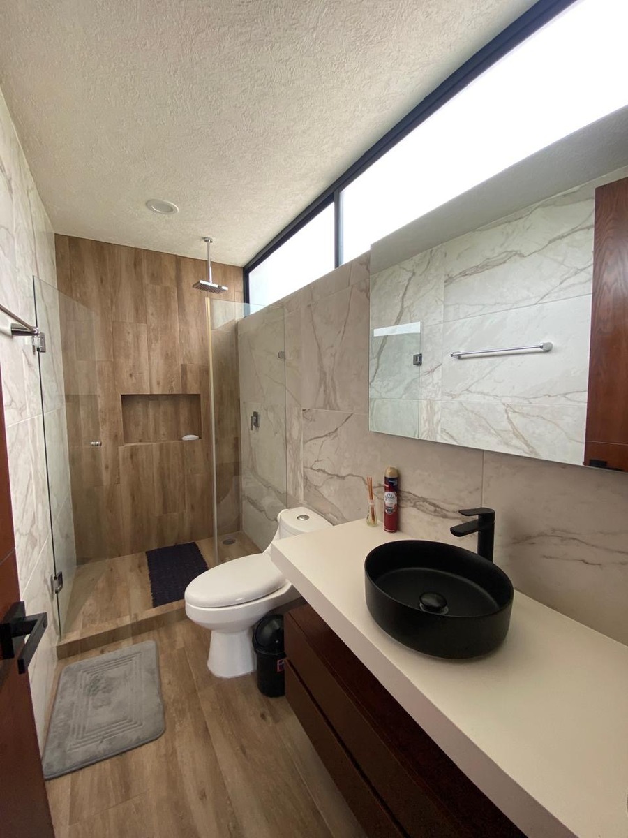 Recámara con baño completo en planta baja, puede ser utilizada para visitas o estudio.