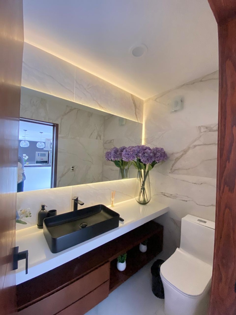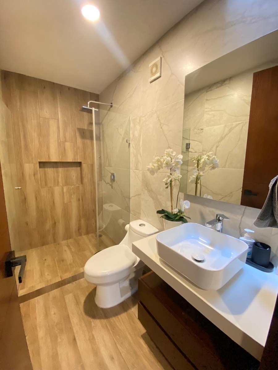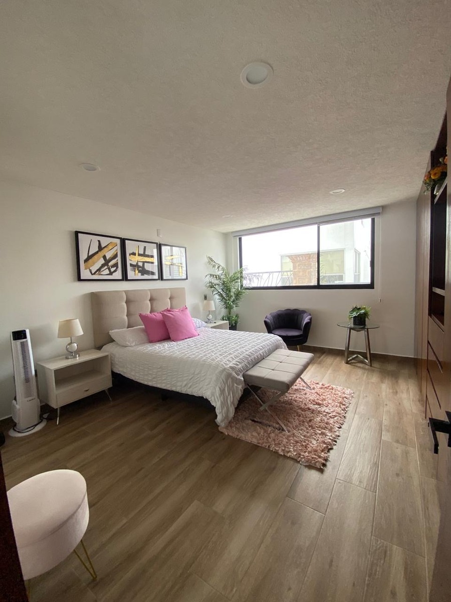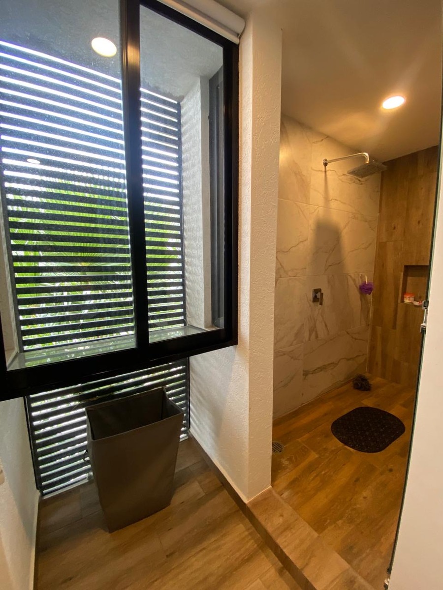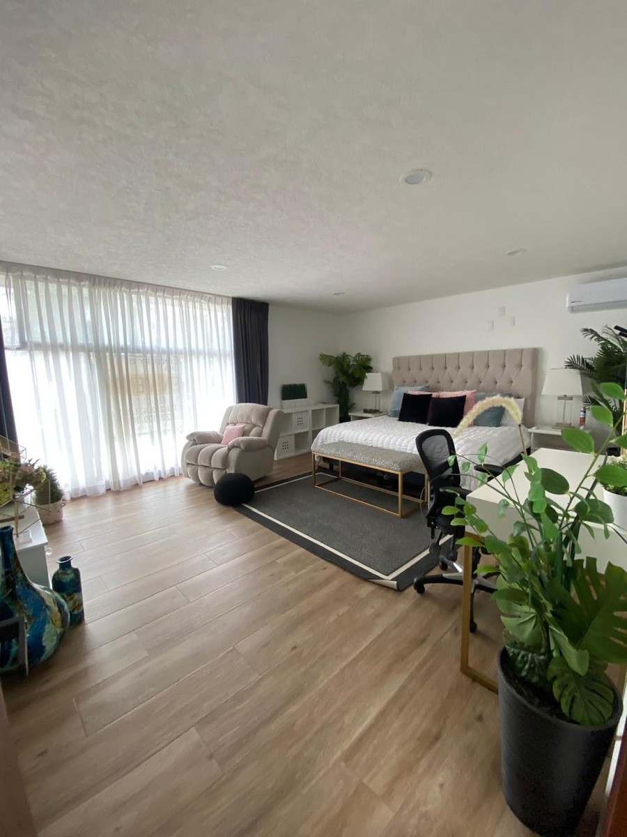 Recámara principal amplia con vestidor, baño completo y aire acondicionado tipo split.