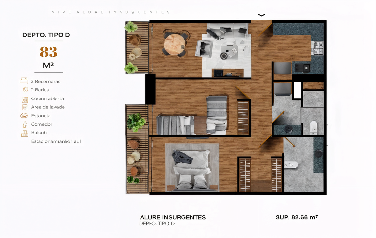 A modern, safe environment with excellent quality of life, surrounded by restaurants, parks, services, and with immediate access to Insurgentes, Viaducto, and the WTC.
