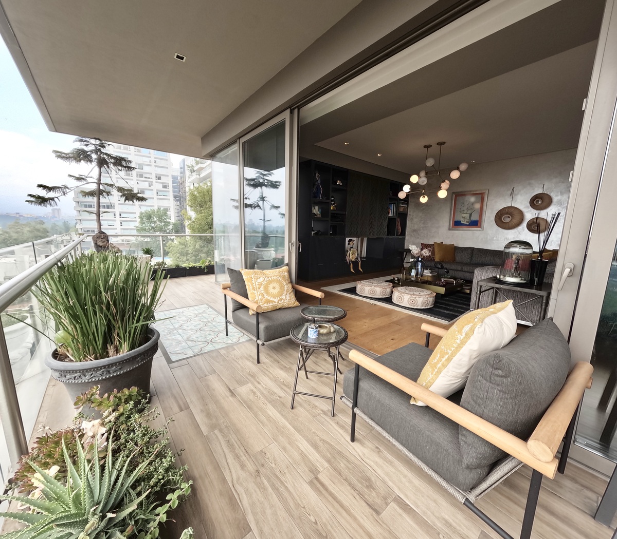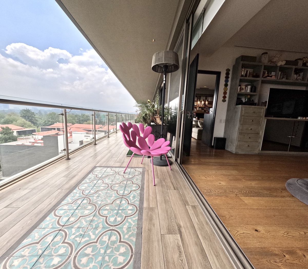• Terraza privada perimetral: 49.64 m² con vistas panorámicas al sur y oriente de la CDMX.