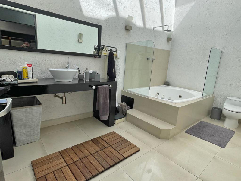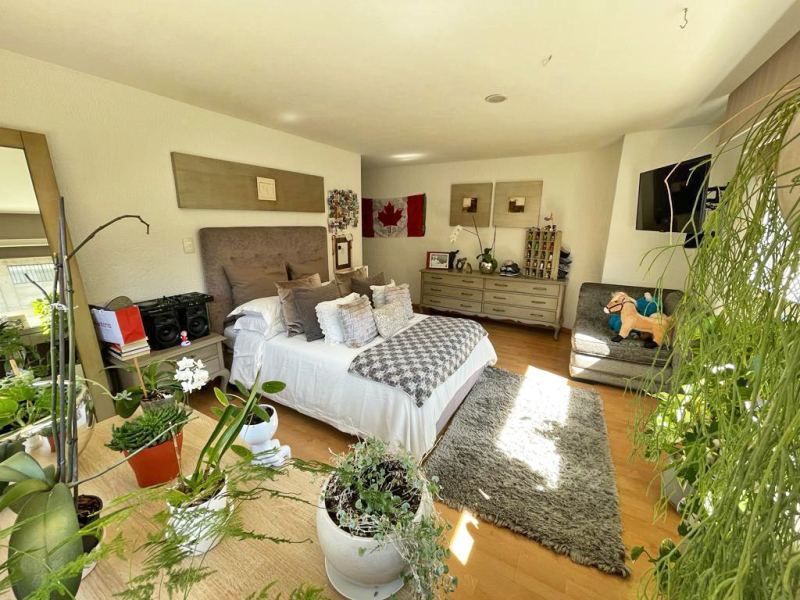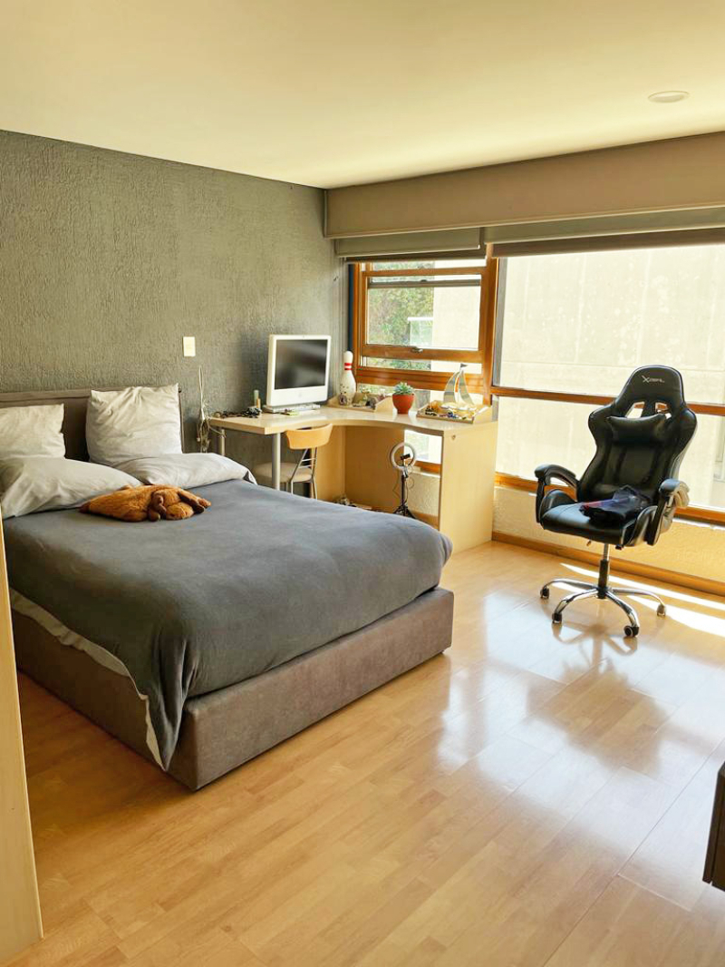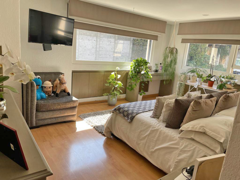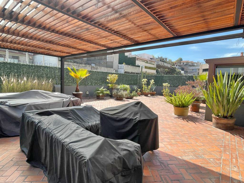 On the lower floor, there is a multipurpose room with bathrooms and access to a large garden, which is the first one, and below there is another with playground equipment.El Departamento tiene dos pisos , al entrar tienes medio baño de visitas y un área social abierta muy grande , donde está el comedor, la sala y un cuarto de t.v, además una cocina amplia con un pequeño antecomedor, área de lavado y cuarto de servicio con baño y tres recámaras con vestidor y baño propio, en la parte de arriba hay una gran terraza con un cuarto muy amplio que puede ser la cuarta recámara o un family , tiene baño completo y otro espacio que puede ser una oficina o un gym.