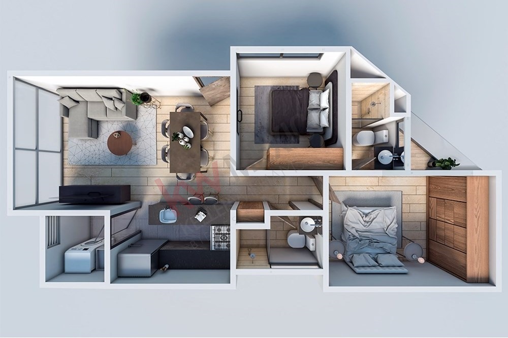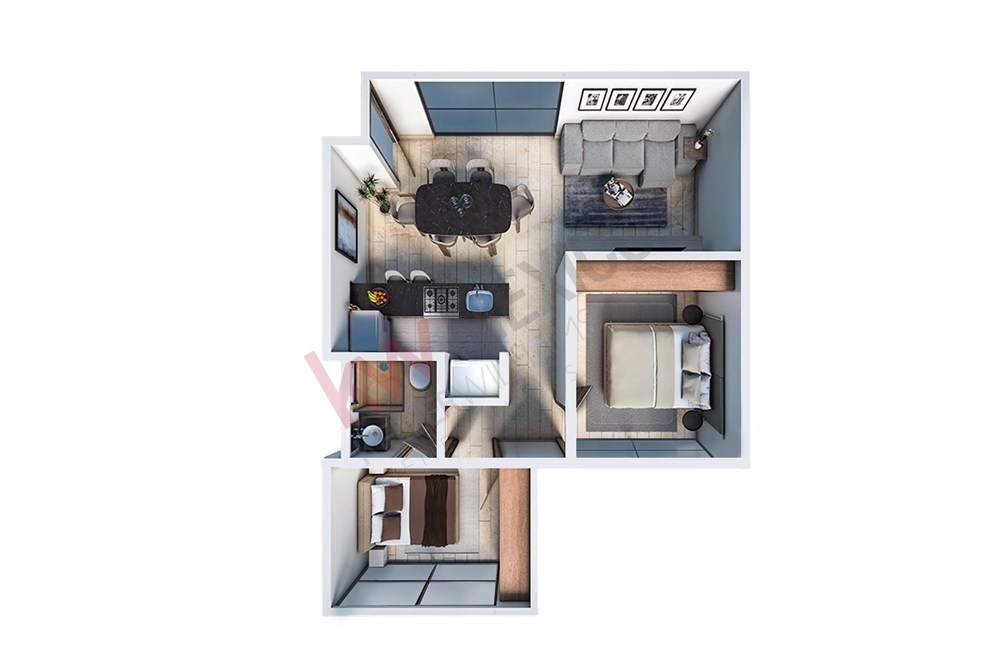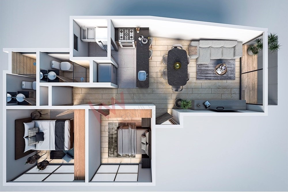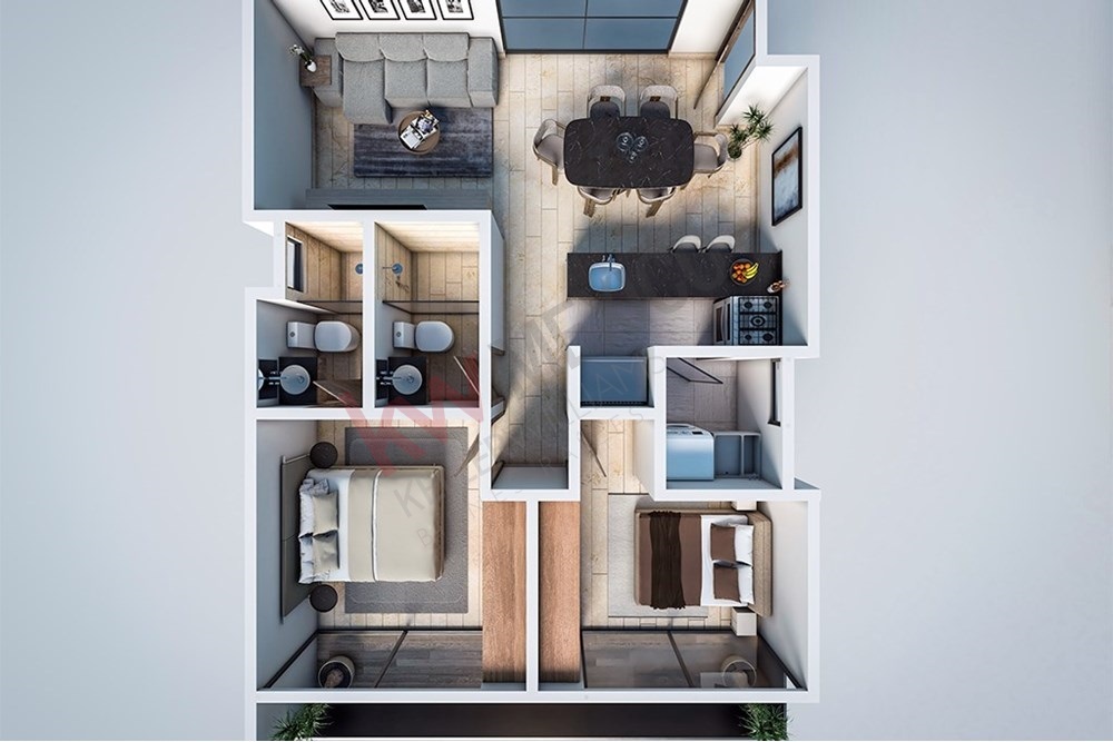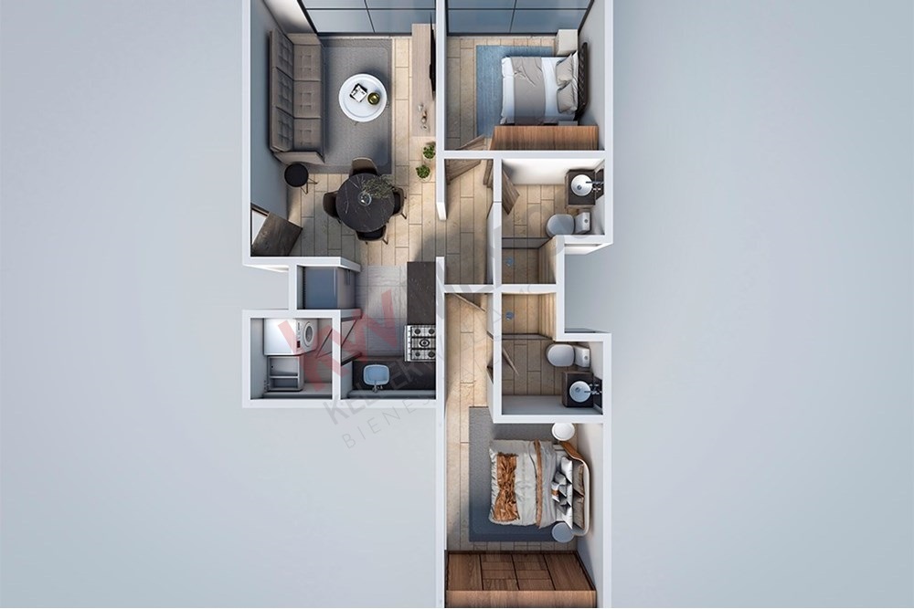 El departamento ofrece un diseño eficiente y funcional con un total de 60.3 metros cuadrados de área habitable. Incluye dos amplias recámaras, perfectas para un estilo de vida práctico, y un baño bien distribuido, ideal para tus necesidades diarias. Con un total de cinco habitaciones, cada rincón está diseñado para maximizar el confort y la habitabilidad.