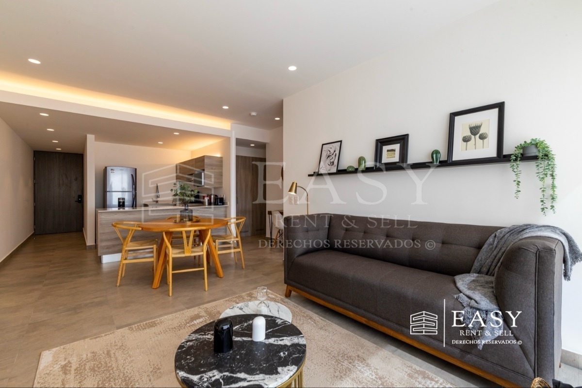 • Sala-comedor con ventanales de piso a techo y luz natural todo el día