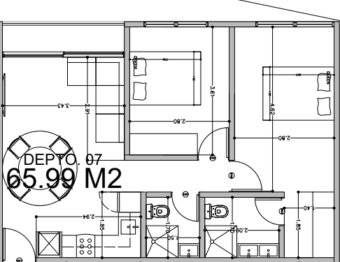 En Venta Departamento 307 ubicado al interior del Desarrollo, cuenta con un Área interior de 65.99m² + Área de Balcón de 2.98m² = Área Total de 68.97m²