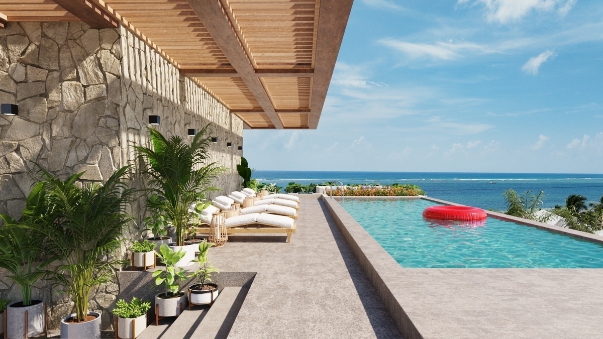 ✨ Sole Blu Ocean Living is the most complete residential development in Puerto Morelos. With 75 exclusive condominiums facing the Caribbean Sea, this project offers luxury, added value, and a unique experience of living-vacationing with high rental yields.