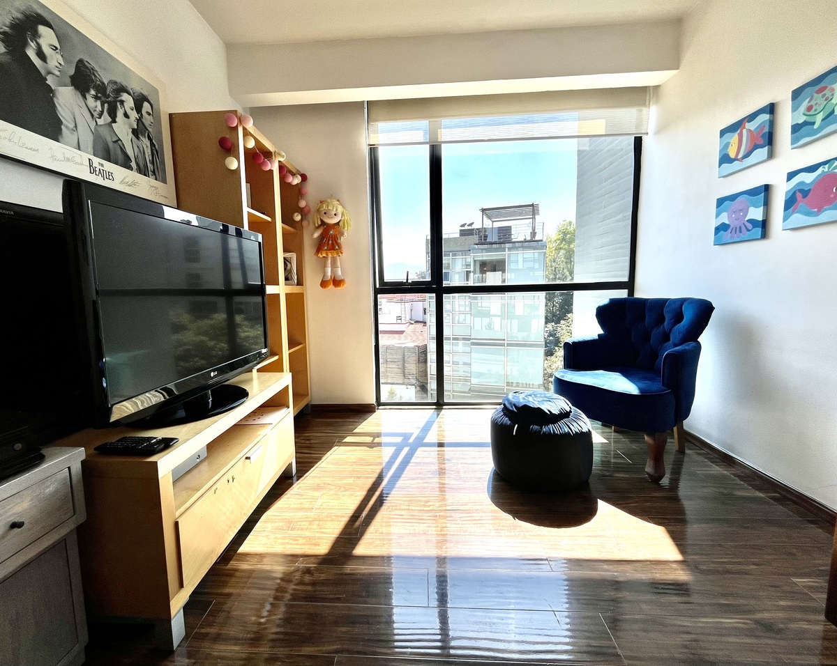 - The price does NOT include furniture shown in photographs.54121381948Departamento ubicado en tercer piso, cuenta amplia estancia sala comedor, cocina integral abierta con barra de granito, 3 recamaras la principal con vestidor y baño, y las otras dos con closet y baño compartido, ambos baños con ventilación natural.