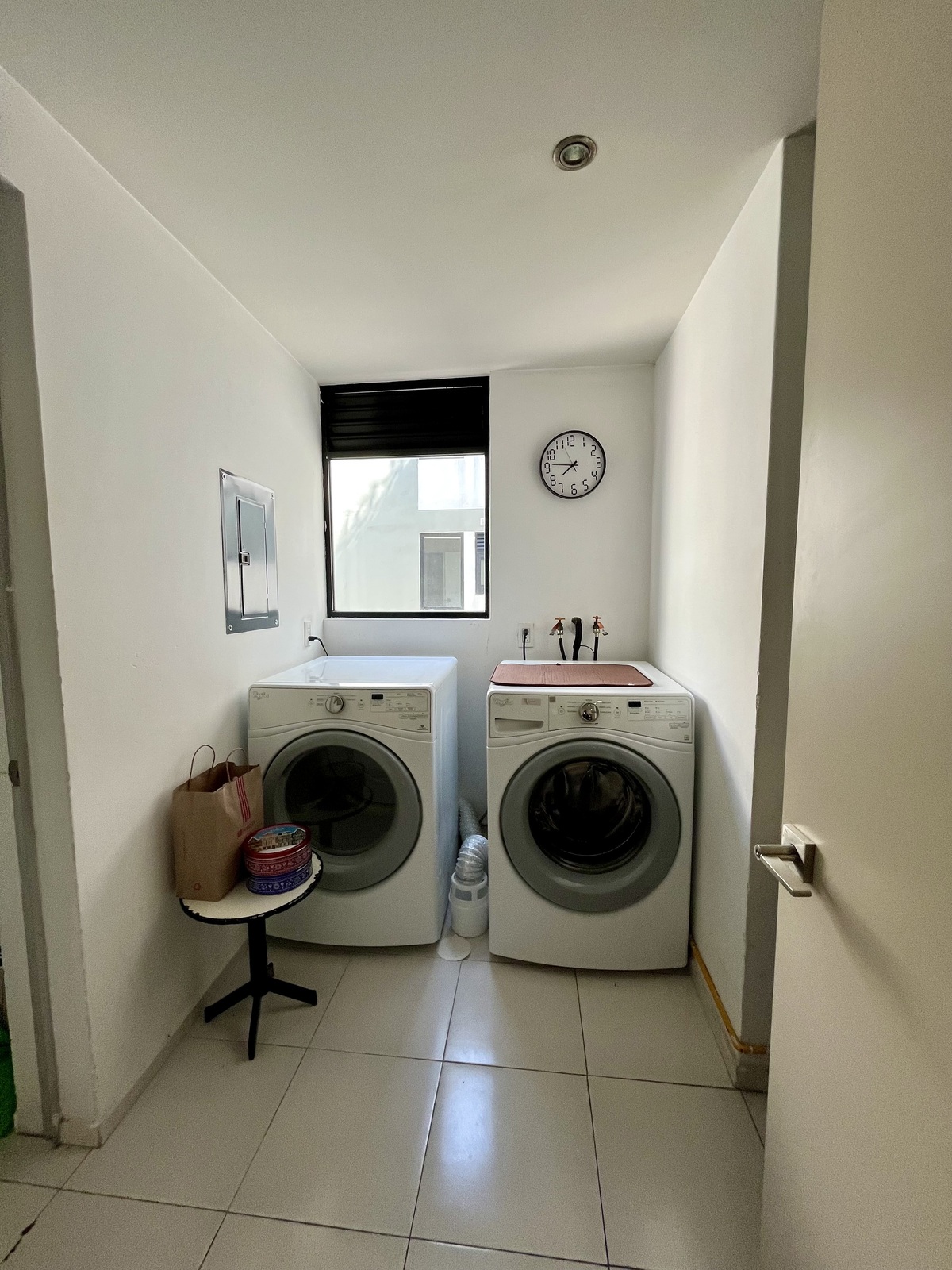 Cuarto de lavado con ventilación natural, cuarto de servicio con baño completo.