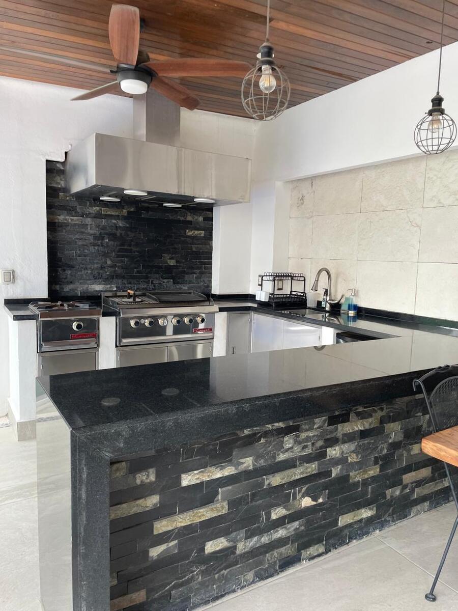 🍃 Área social al aire libre techada, acabados de alta gama, ventiladores decorativos, asador profesional e iluminación elegante