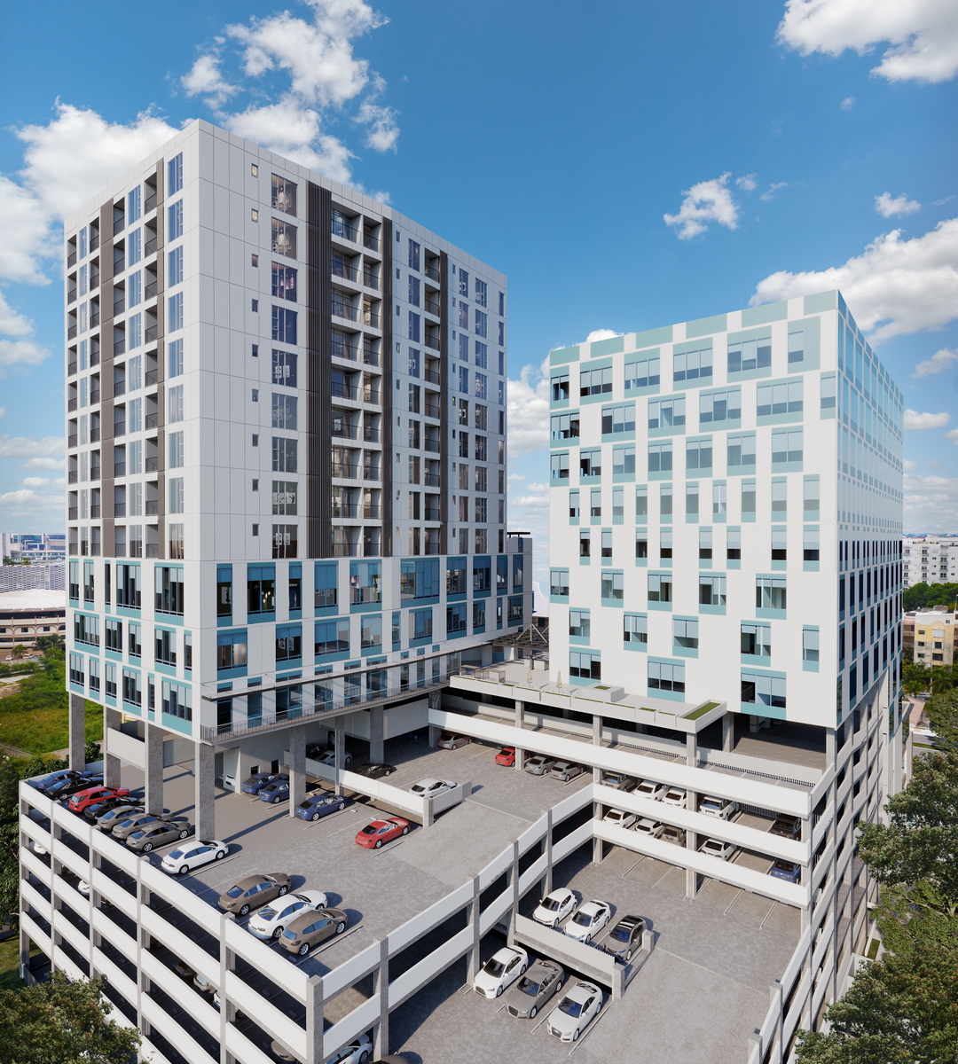 260 parking spaces for visitors of the entire project and employees of the Plaza's businesses.