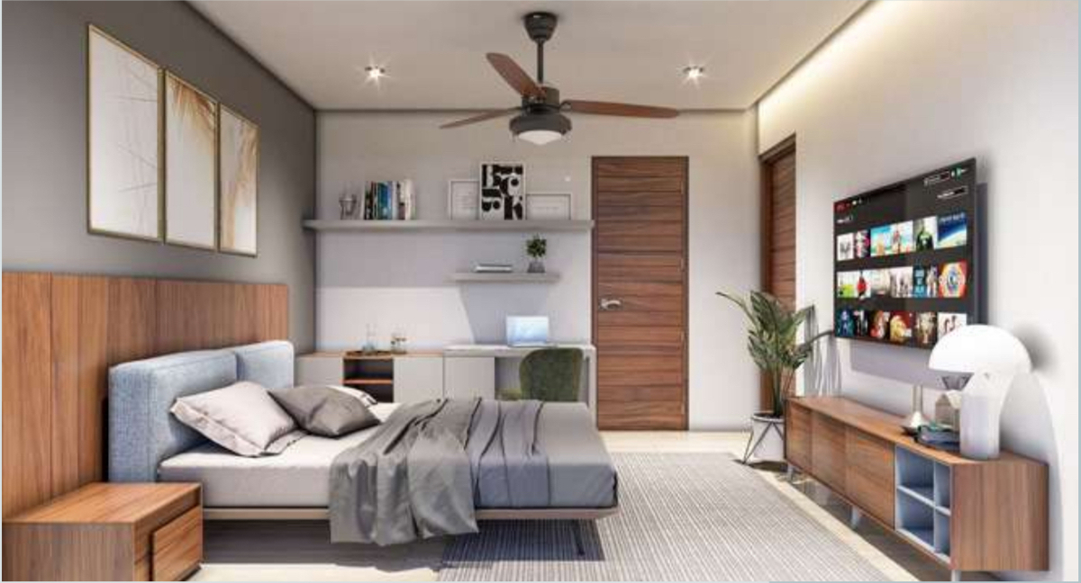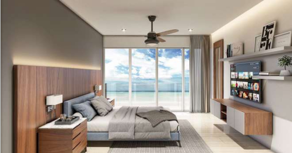 Recámara principal con walk in clóset, baño completo, balcón con vista al mar.