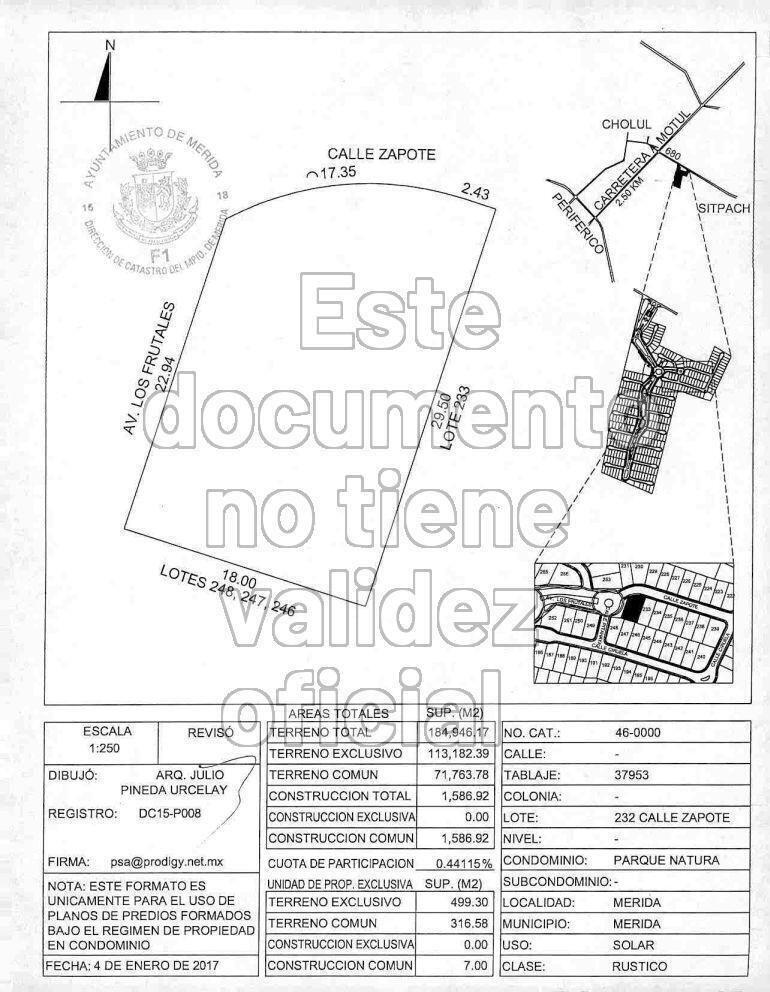 The lot is located less than 200 meters from the amenities, on a corner. It is irregularly shaped with a front of 18 meters and a depth of 29.5 meters; it is a lot that, due to its location and conditions, is ideal for a house with a great architectural design.
