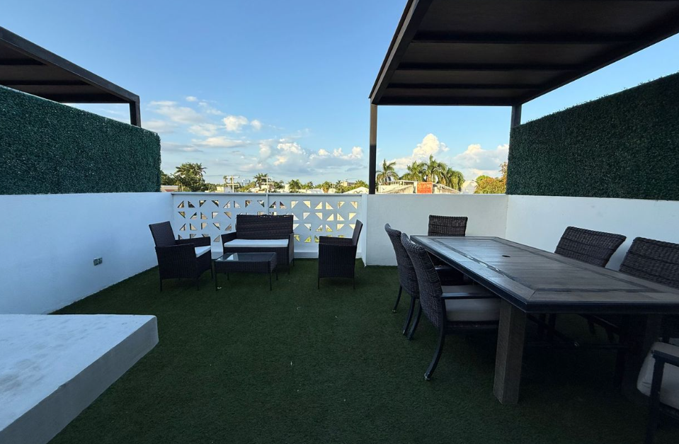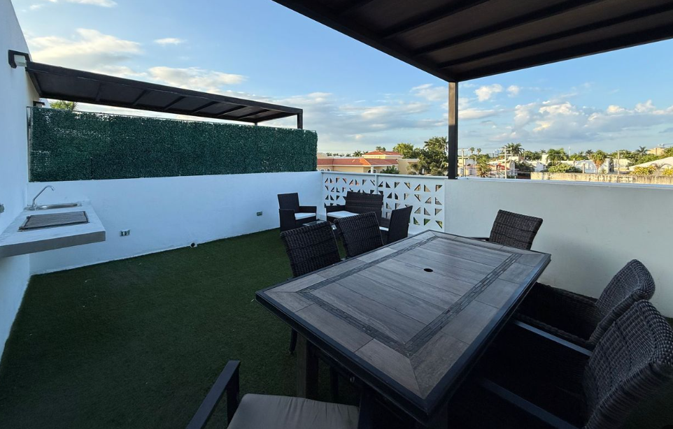 -🍖 Rooftop with grill bar and half bathroom for guests.