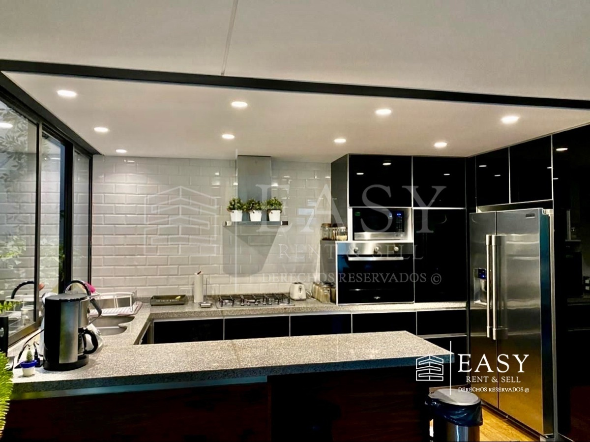 • Cocina abierta con acabados de mármol y madera en todo el interior