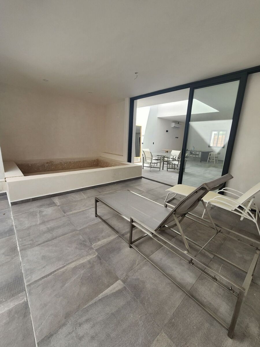 Terraza exterior techada con piscina