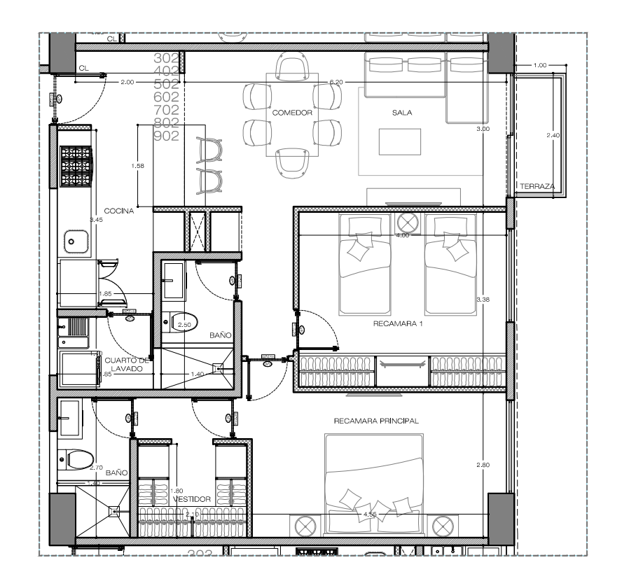 Balcón: 2.40 m2 (ya incluidos en el metraje total)