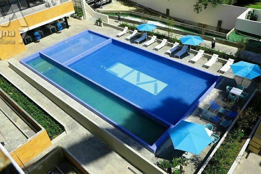Condominio con múltiples áreas comunes como Terrazas, Alberca, Gimnasio, Fogateros, zona comercial entre otras.