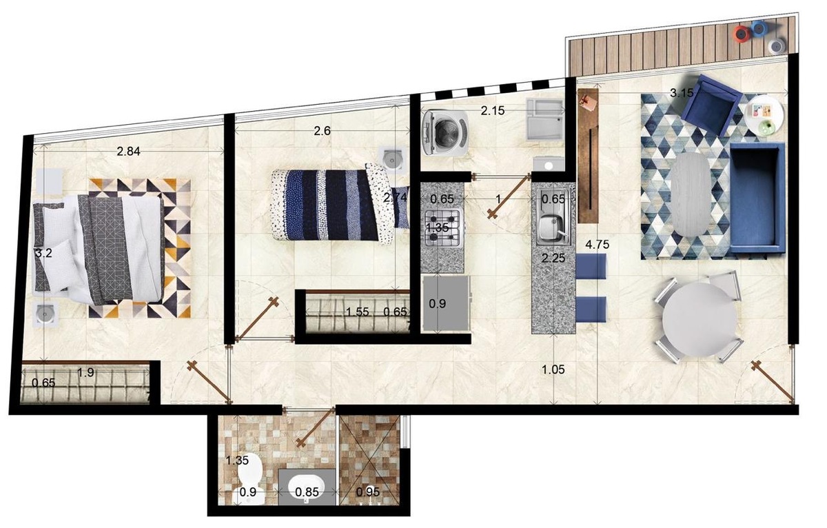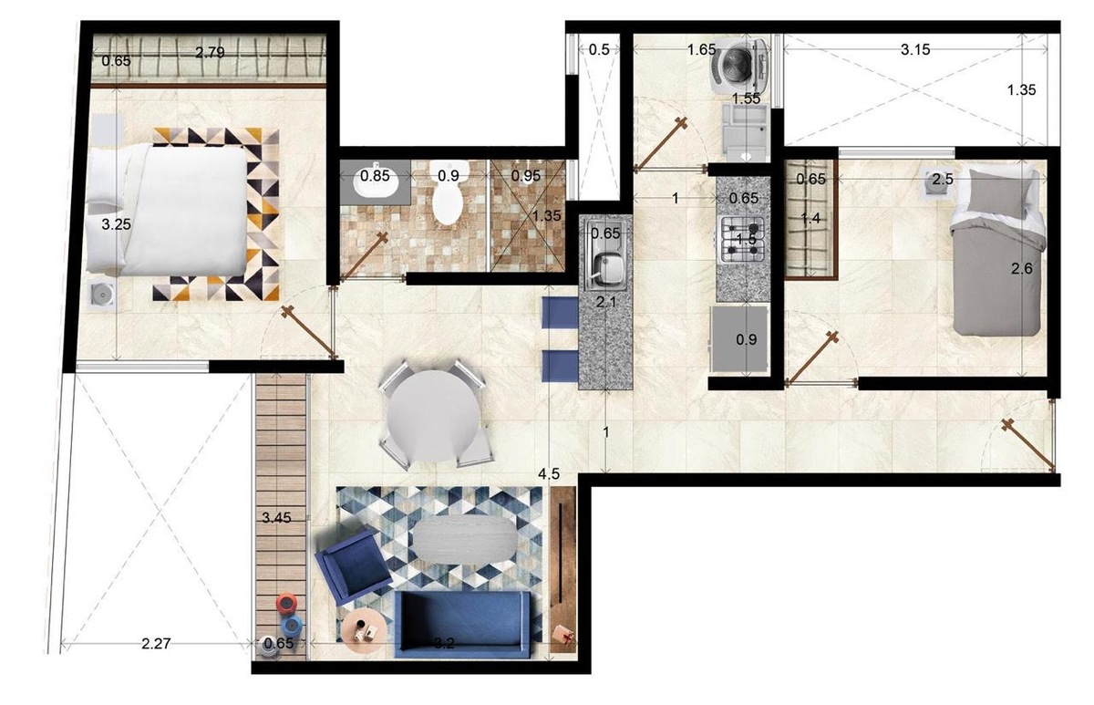 Metrajes desde 48m2-65m2 de construcción distribuidos en 5 niveles.