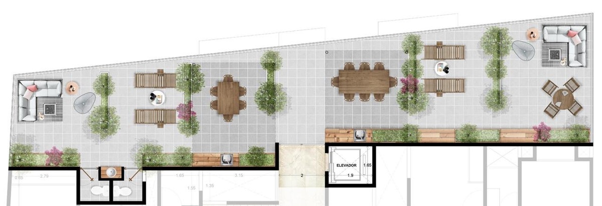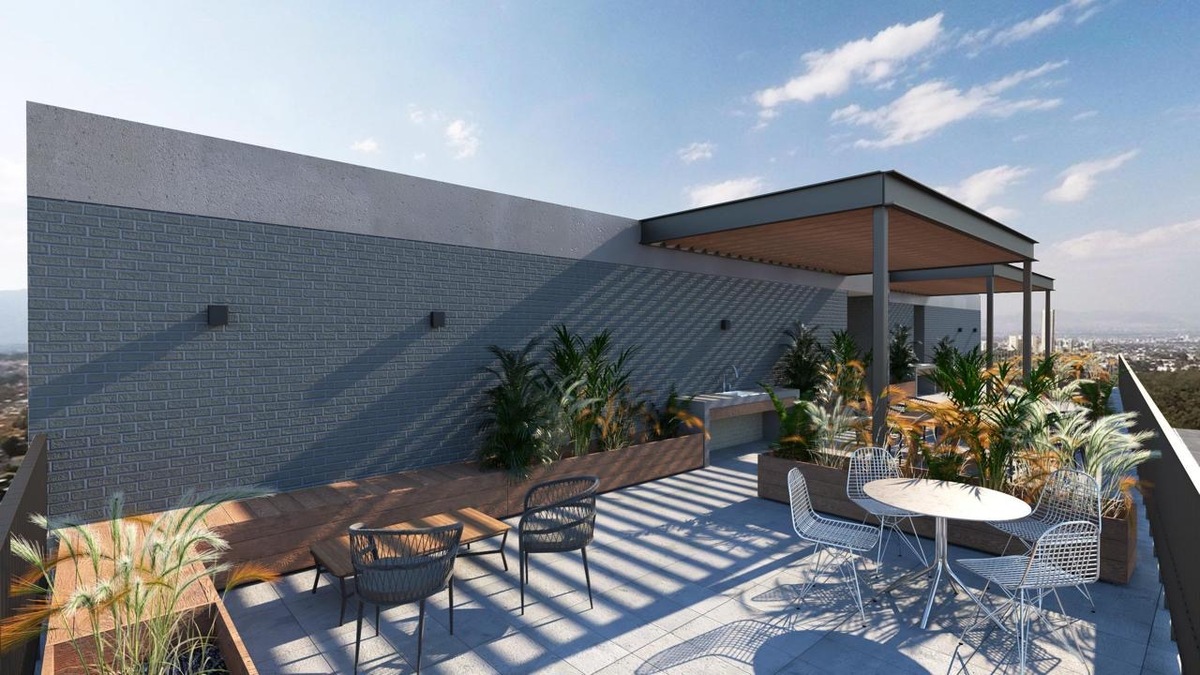 Roof Garden Común, con barra de servicio, baños y áreas de estar