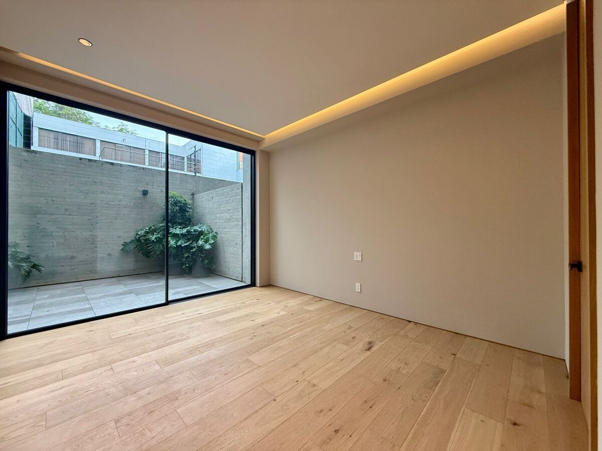 Located in the exclusive area of Polanco, this garden house apartment offers a spacious and bright living-dining room, closed kitchen, two bedrooms with walk-in closet, and service room. Despite being a garden house, it has excellent natural lighting.
