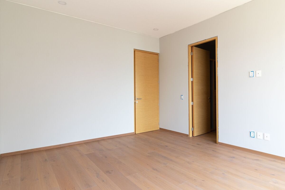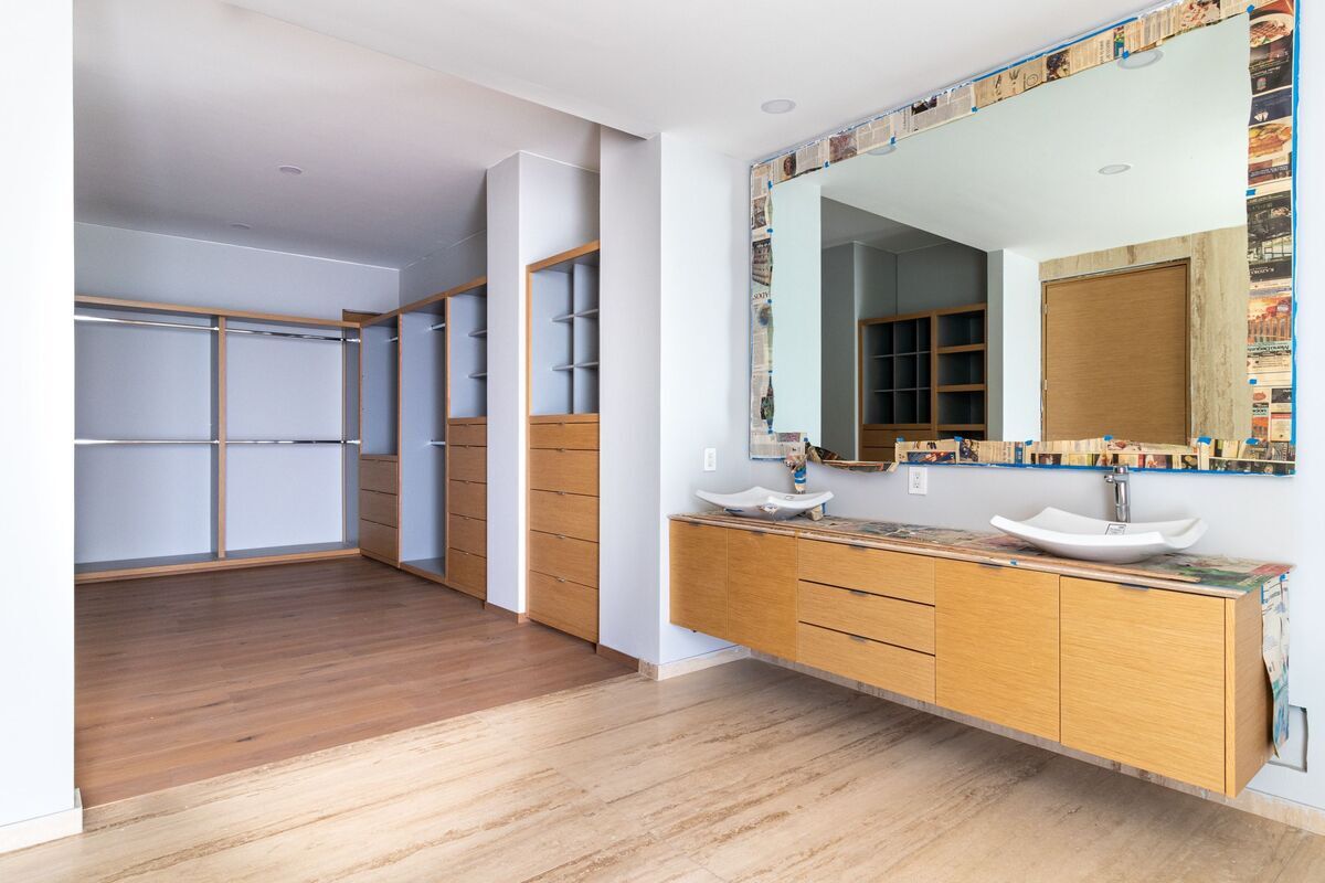 Cuenta con 3 recámaras, cada una con baño y vestidor, el vestidor de la recámara principal es de gran tamaño, cuarto de tv cómodo e iluminado, cocina integral con isla que se comunica con una hermosa terraza de 180 grados. Área de lavado, cuarto de servicio, bodega, 4 estacionamientos muy amplios y con salida independiente.