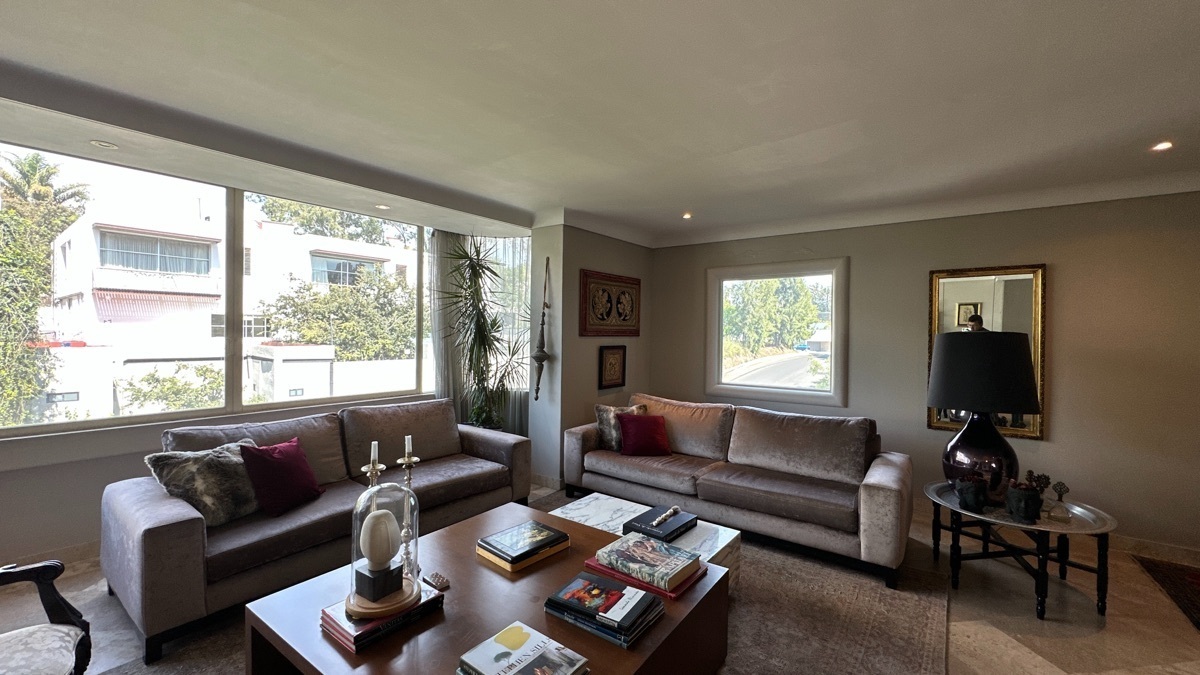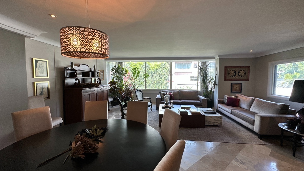 Beautiful apartment in one of the most exclusive areas of Bosques de las Lomas. This apartment has very good natural light. It has 280m² and has 3 bedrooms with full bathroom and closet. The entire apartment has marble floors and wood finishes. It has a family room, living room, dining room, kitchen and service room. It has space for 2 parking spaces and has the following amenities: a multipurpose room and a large terrace with a basketball court and a DIY. The building has 24 hour security and an extra doorman at the lobby reception. This apartment also has a cellar.Precioso departamento en una de las zonas mas exclusivas de Bosques de las Lomas. Este departamento cuenta con muy buena luz natural. Tiene 280m y cuenta con 3 recamaras con baño completo y closet. Todo el departamento tiene pisos de mármol y acabados de madera. Cuenta con un Family room, sala, comedor, cocina y cuarto de servicio. Tiene espacio para 2 estacionamientos y cuenta con la siguientes amenidades: un salón de usos múltiples y una terraza grande con cancha de basket y un bricolin. El edifico tiene seguridad las 24 hrs y un portero extra en la recepción del lobby. Este departamento también cuenta con bodega.