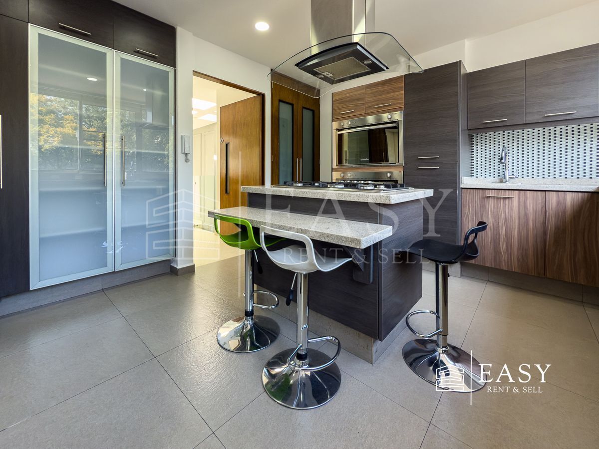 The apartment consists of 20 terrace + 229m2 of living space, which includes a large living room, equipped kitchen with closed double oven, laundry area, and service room. Three bedrooms and three full bathrooms, two parking spaces, and 24-hour security.