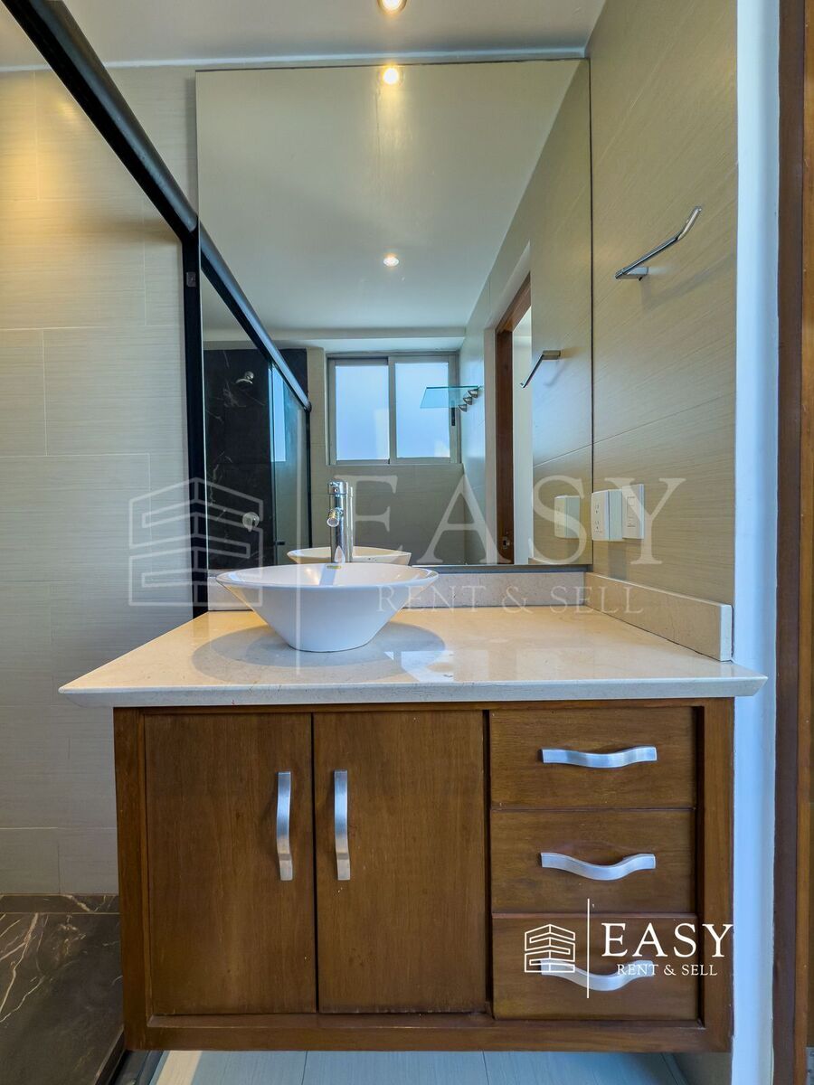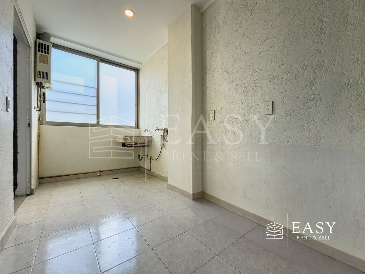 El departamento consta de 20 terraza + 229m2 habitables en los cuales hay amplia estancia, cocina equipada con doble horno cerrada, área de lavado y cuarto de servicio. Tres recámaras y tres baños completos, dos lugares de estacionamiento y seguridad 24 horas.