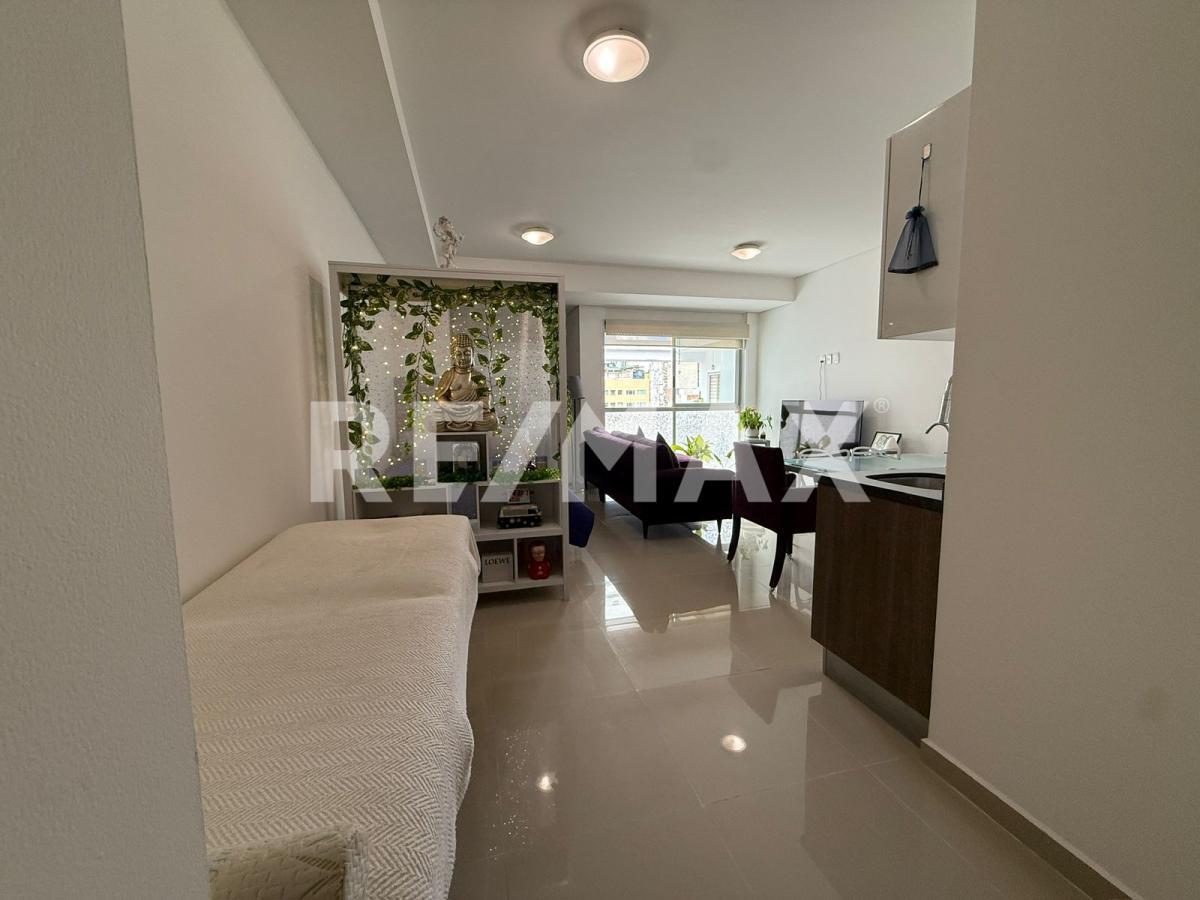 Estudio/ loft de 51 m2 con cocina integral, espacio para recámara y estancia de sala y comedor, baño completo con conexión para lavadora.