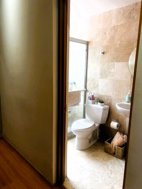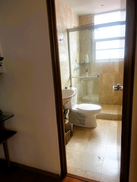 Tiene otro baño completo que le da servicio a la 2a recamara que tiene closet.