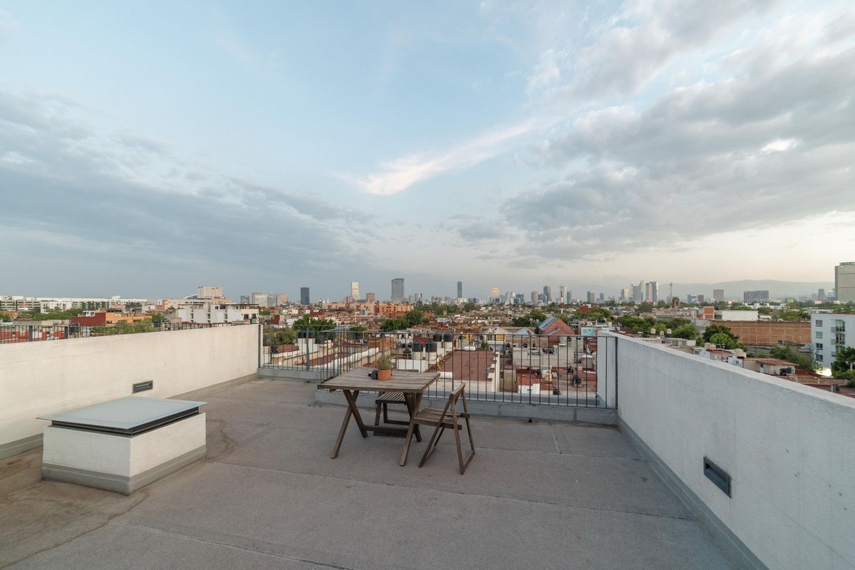 Divino departamento moderno con una gran terraza de 30 m2 2 recamaras con baño completo Sala y comedor con cocina abierta 67 m2 interiores mas 30 m2 de terraza privada Centro de lavado Bodega 1 estacionamiento