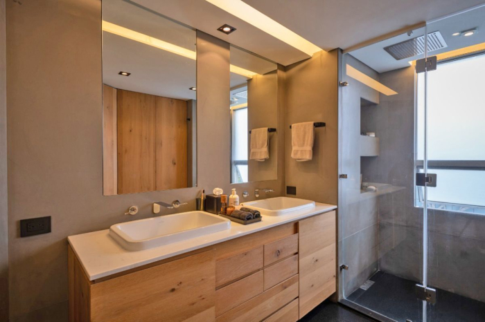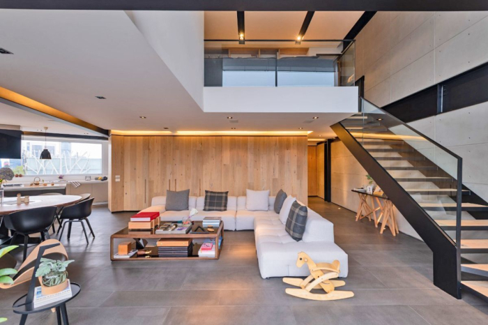 A la entrada de este departamento nos impacta la amplitud que da la doble altura y el caudal de luz que entra por sus grandes ventanales desde donde podemos observar las copas de los arboles, vista privilegiada en Polanco.